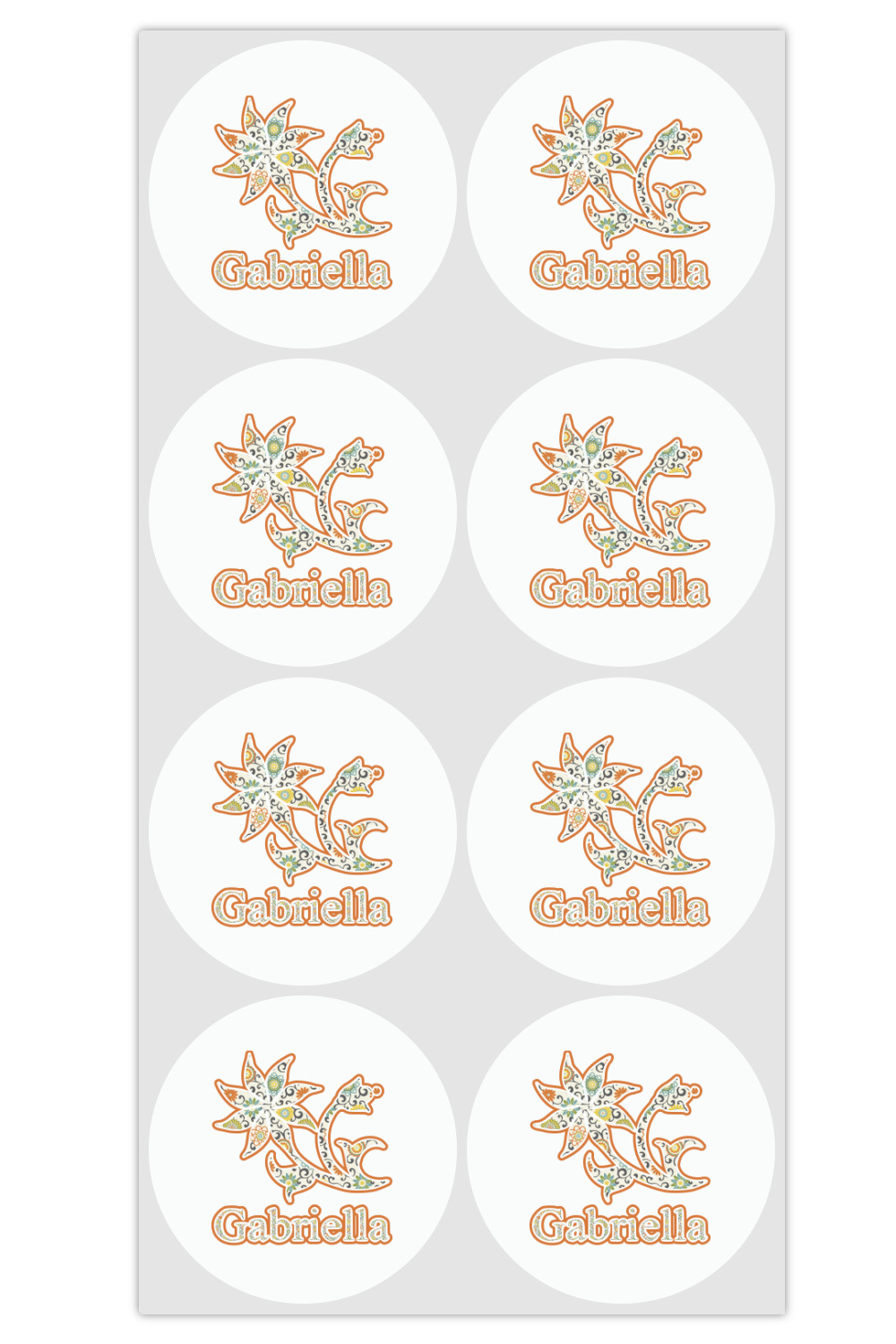The design has a classic ribbon in orange trimmed in white. The decorative white scalloped label is trimmed in orange. Add an initial and a name for that personal touch to pull the entire design together.