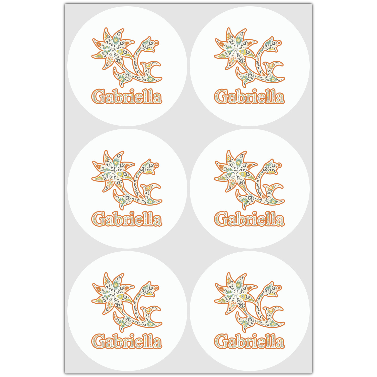 The design has a classic ribbon in orange trimmed in white. The decorative white scalloped label is trimmed in orange. Add an initial and a name for that personal touch to pull the entire design together.