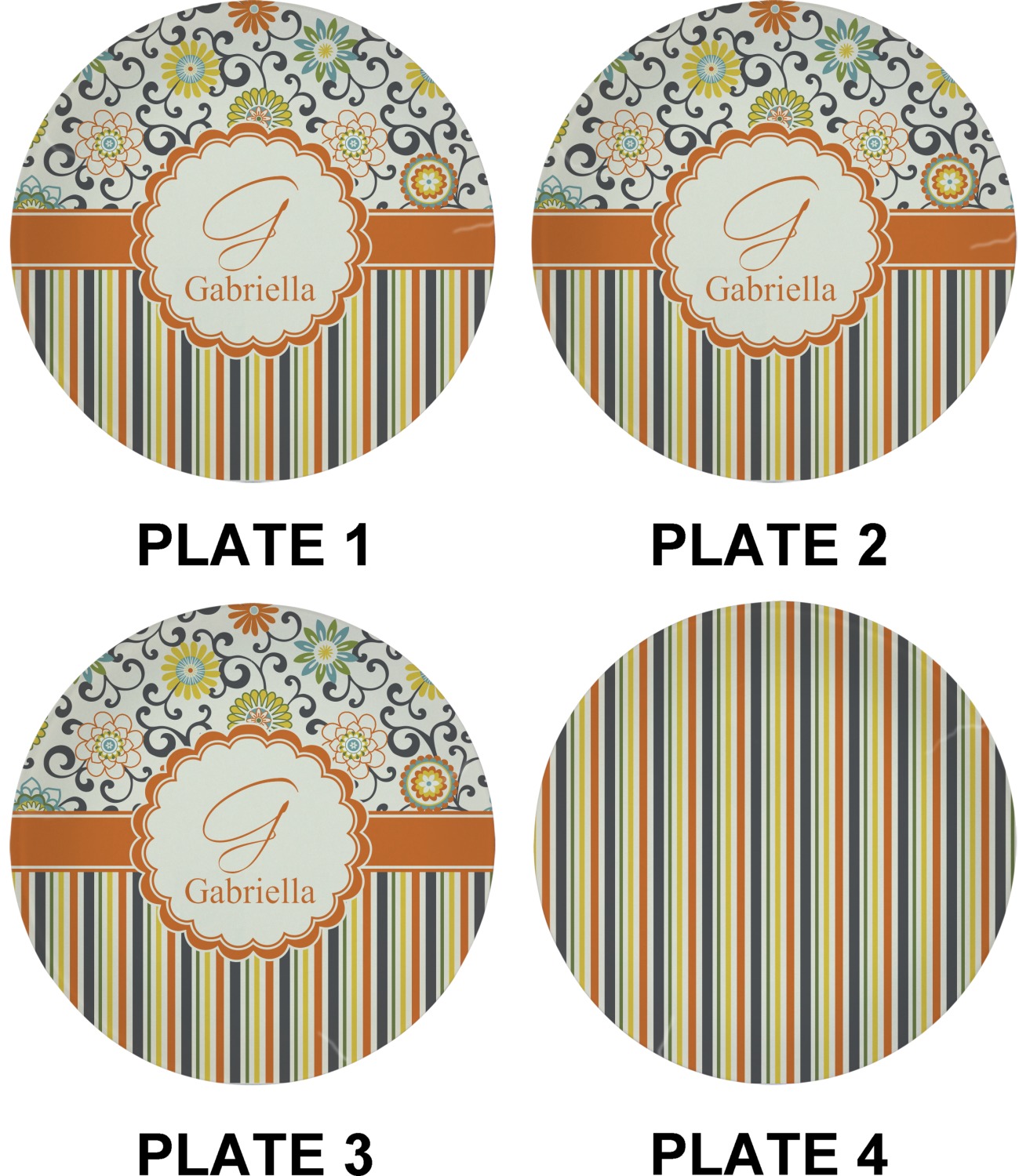 With a of designs and patterns, these plates are completely customizable. Choose a foodie design, complete with red-hot chili peppers, or go classic with stripes or plaid. Include your monogram or family name to make sure these plates never get lost at parties!