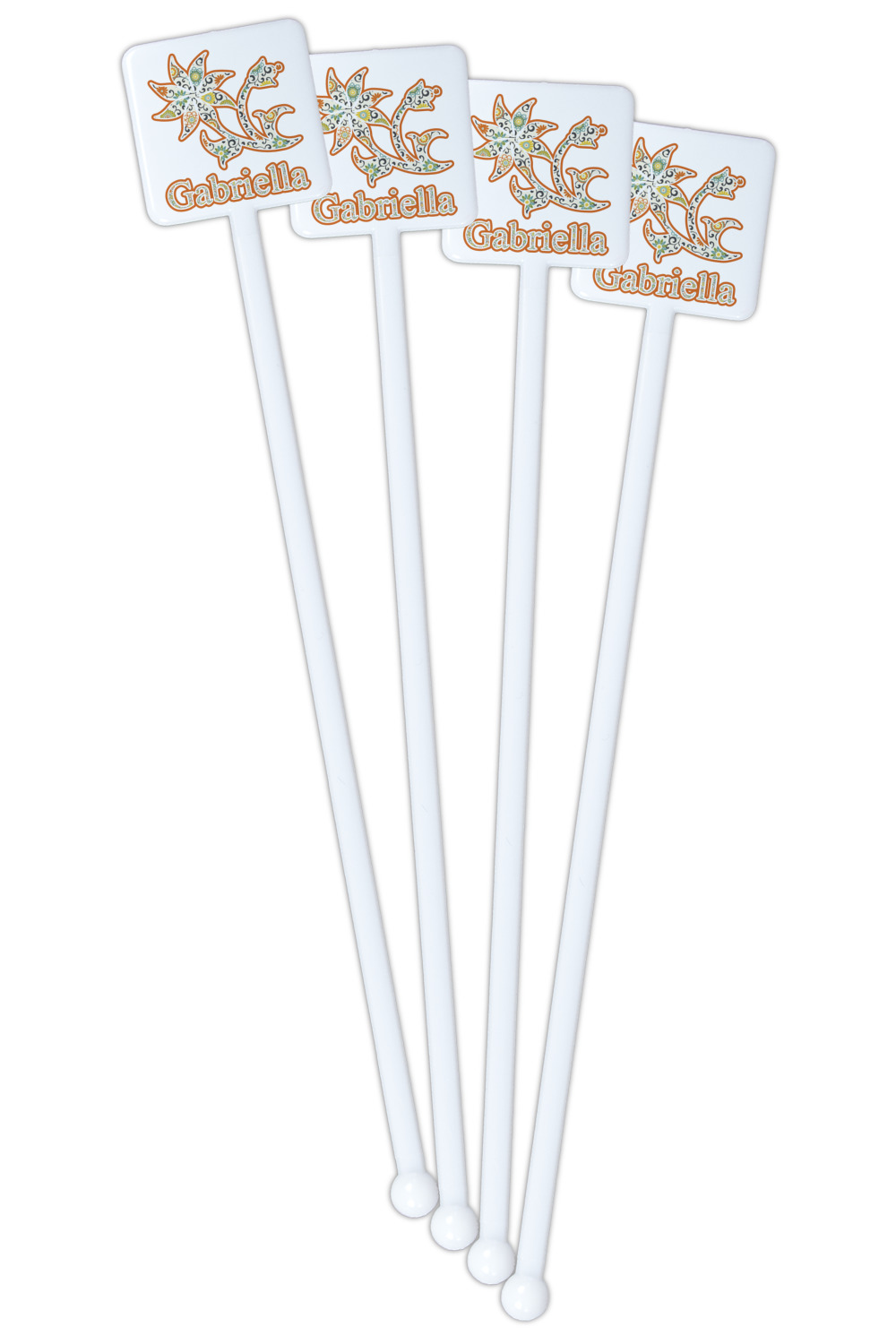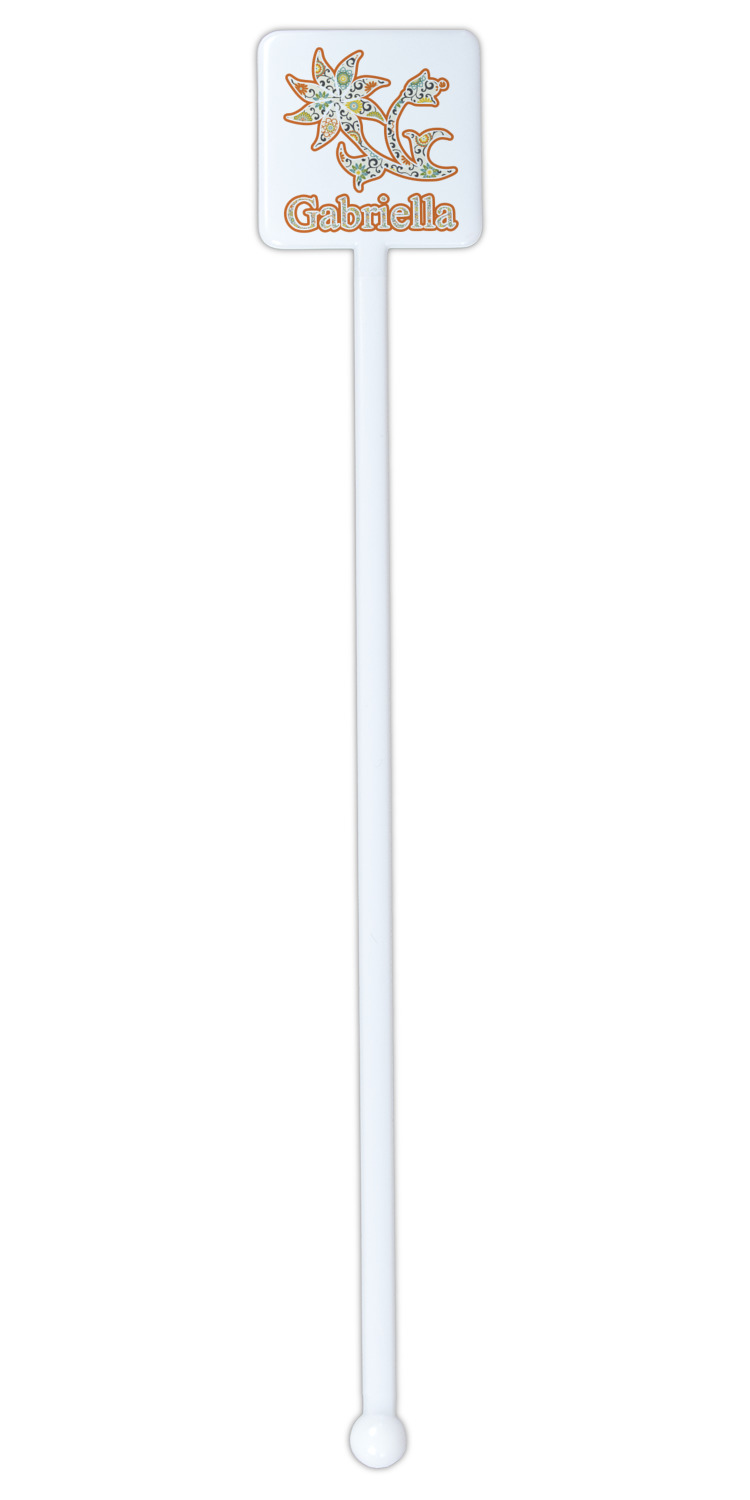 The design has a classic ribbon in orange trimmed in white. The decorative white scalloped label is trimmed in orange. Add an initial and a name for that personal touch to pull the entire design together.