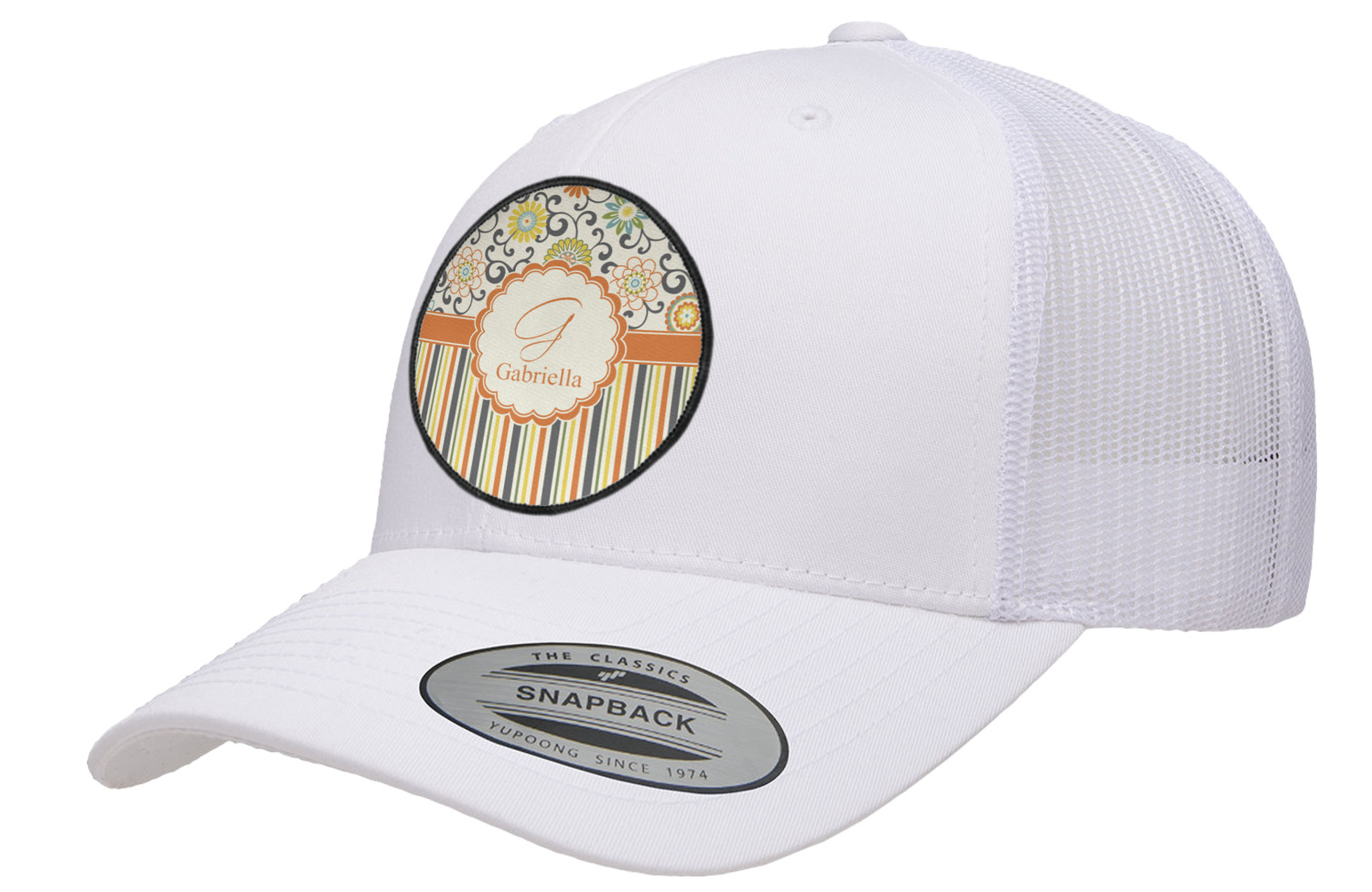 The design has a classic ribbon in orange trimmed in white. The decorative white scalloped label is trimmed in orange. Add an initial and a name for that personal touch to pull the entire design together.
