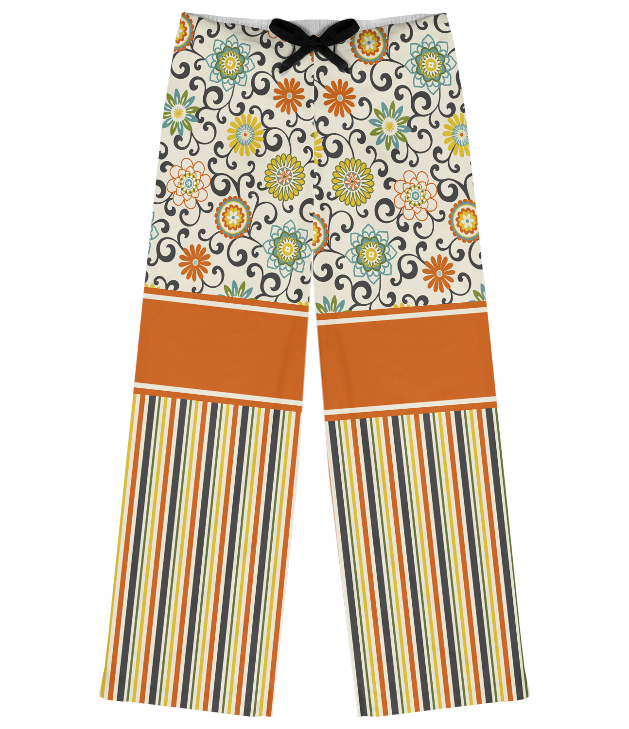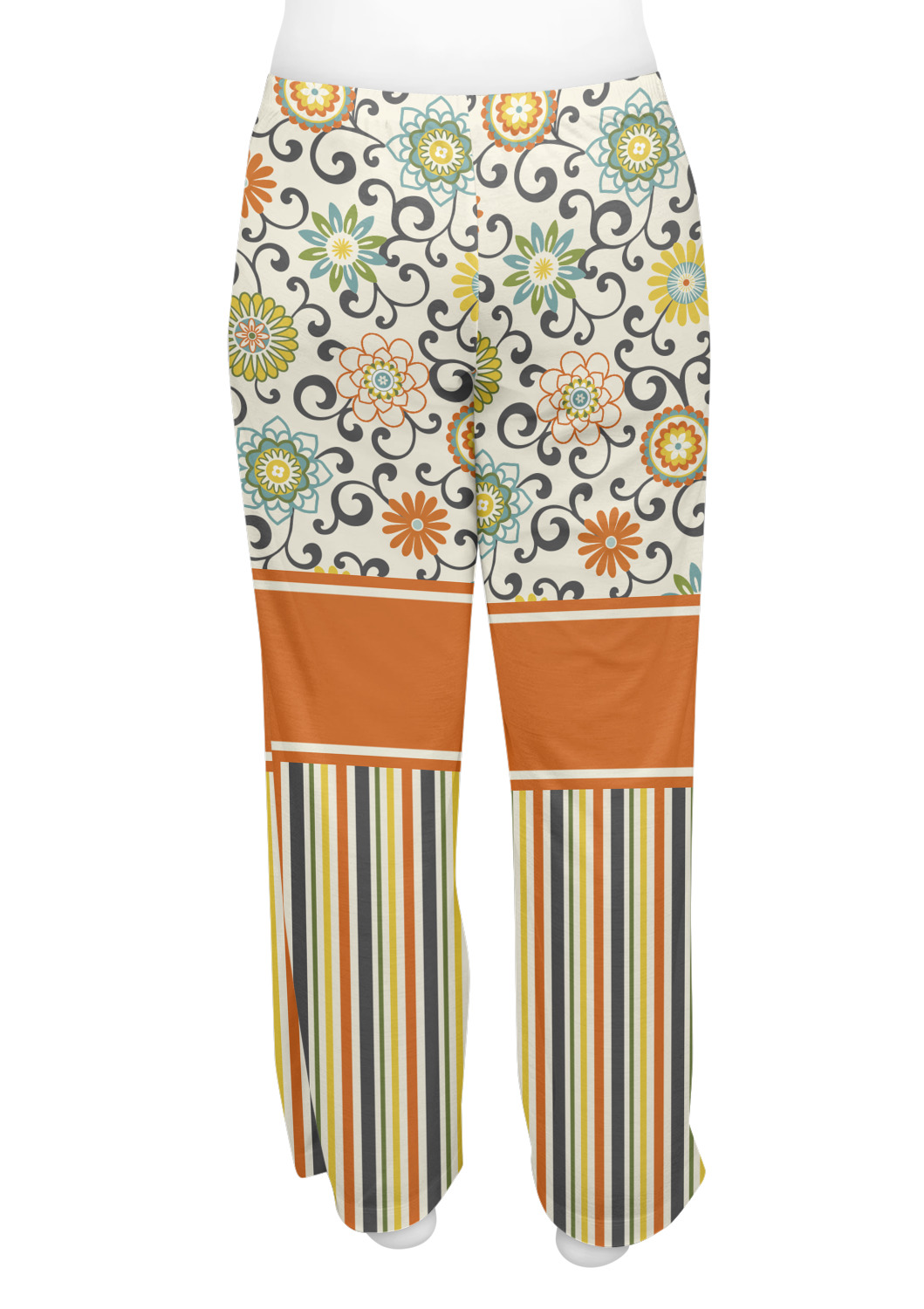 We have brought retro back to being relevant with this gorgeous swirls and floral pattern with a traditional stripe pairing. The top of the design renews the orange, green, blue, and yellow but adds a modern twist by using dark gray. The floral pattern is set on a background of white to make this print come to life. The bottom of the design has the classic stripe print using coordinating colors from the floral pattern