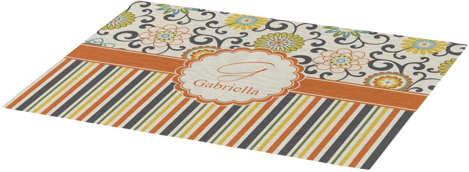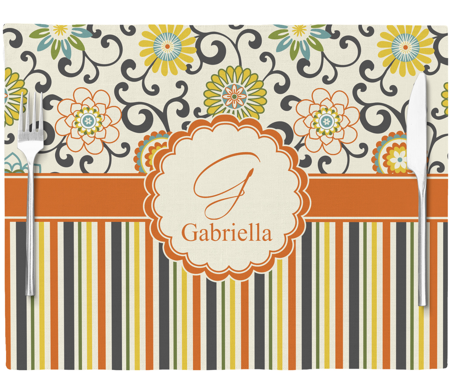 Each of our table mats are a poly twill material with woven burlap detailing. This creates a soft, quality placemat for us to fully print your personalized design across. The woven twill also adds a wrinkle-free surface to set your table! Each customizable placemat is a rectangle shape measuring at approximately 13 x 18 and printed here in the USA.