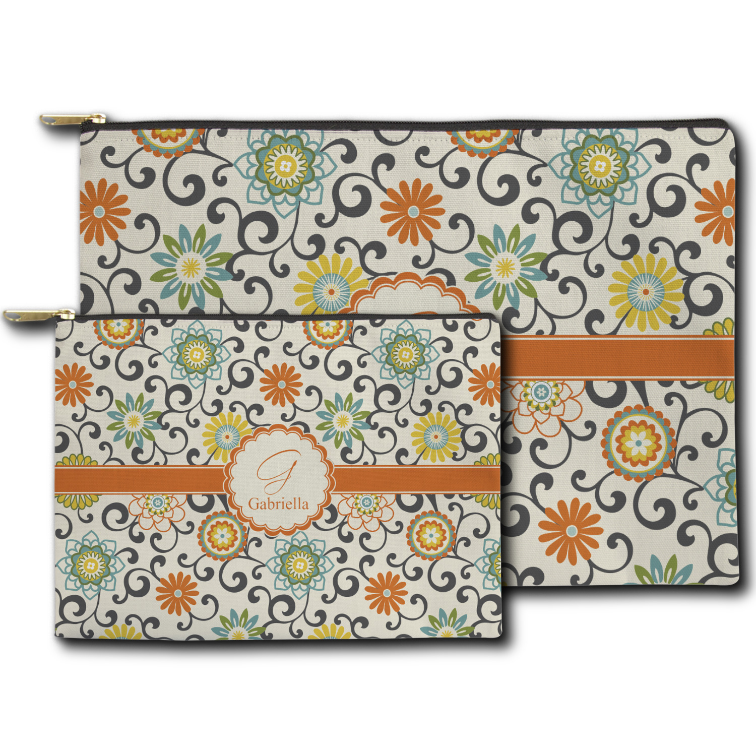 You can design both the front and the back of the pouch - same design, two complementary designs or two totally different designs - the choice is yours! We offer many different personalization styles i.e. name, name & initial, monograms - so the choice to personalize is also yours.
