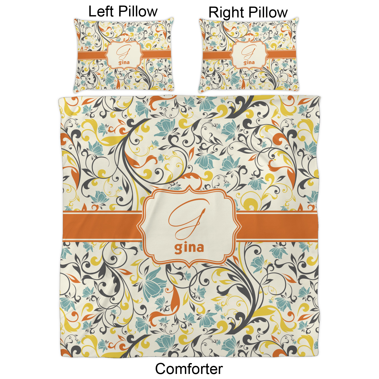 We have hundreds of different design templates for you to choose from Each design can be customized to your exact specifications. Not only can you customize the comforter, but you can also customize each pillow sham e.g. for a queen comforter set you have have Mr & Mrs pillow shams with the last name on comforter.