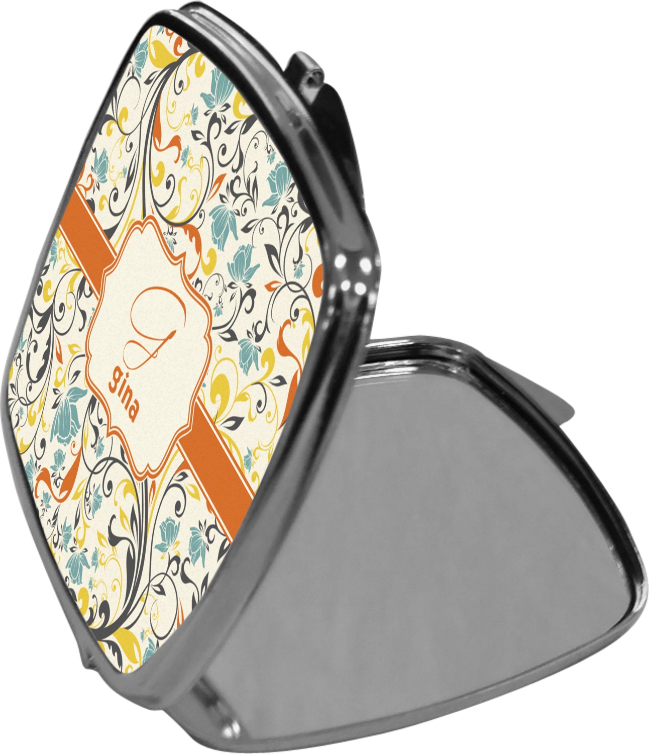We offer many prints and patterns and many of our patterns are available in 45 different colors. You can personalized the compact mirrors with a name, a monogram or just an initial. We offer several different label, ribbon and font choices. Our customization system lets you create your very own custom & unique product and it lets you preview it before you purchase.