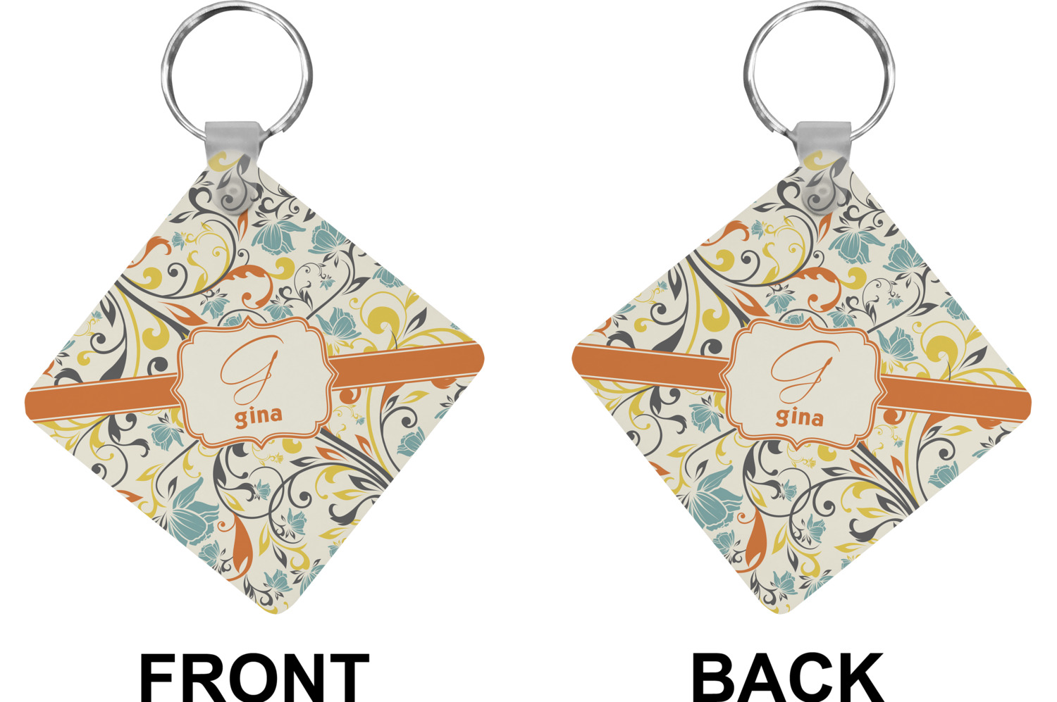 Our personalized keychains attach to the included metal, split key ring with a plastic, removable snap. Since a metal ring is included with your purchase, you have the liberty to keep your keys together on the ring, with or without your unique keychain. We offer this keychain in three different shapes: circle, heart, or diamond. We print your personalized design(s) on both sides of the key chain, and the surface has a glossy, reflective finish that only emphasizes your design. Each keychain is approximately 2.25 by 2.25 inches.