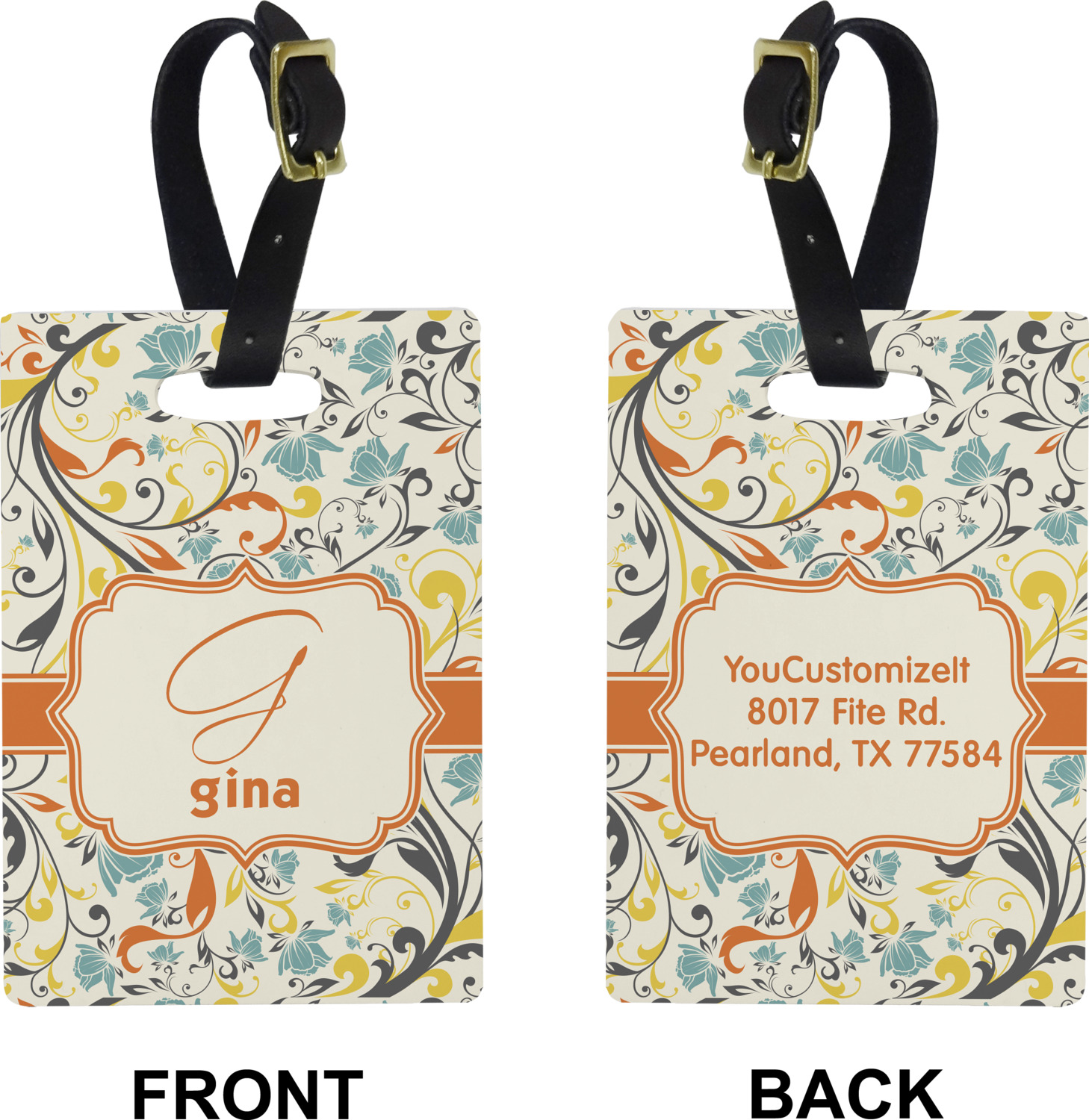 These cute luggage tags are made of a fiber-reinforced, UV-resistant plastic, making them waterproof and durable enough for both everyday use and the rugged adventures of any traveler! A leather strap with holes and a buckle is included with your purchase and can be used to attach your custom luggage tag to any suitcase, backpack, or duffel bag. You can design these travel tags as you wish; your customization will be displayed across the front, while the back will show as little or as much personal information as you want.