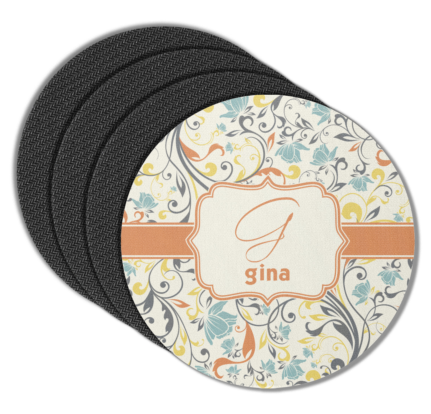 These drink coasters have a smooth, polyester top and a textured, rubber backing on its bottom. The non-slip rubber backing underneath works to keep any spills at bay. At 4 by 4 by 0.25 inches thick, these custom coasters are a suitable size for most drinkware. Your personalization is displayed atop the face of the cup coaster. We sell these rubber coasters in two different shapes: square and round. You can buy each shape as singulars or as a set of 4.