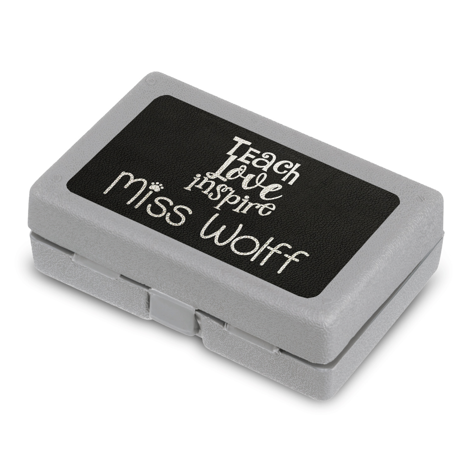 In a tri-fold hard shell case which measures 6" wide, 4" deep and 2" tall, this kit is the perfect size to keep in a desk, garage drawer, or anywhere else in the house. The snap closure keeps it securely closed to ensure the tools do not fall out. With the black faux leather on the outside engraved with your choice of personalization it will be easier to ensure it stays yours by being customized just for you!