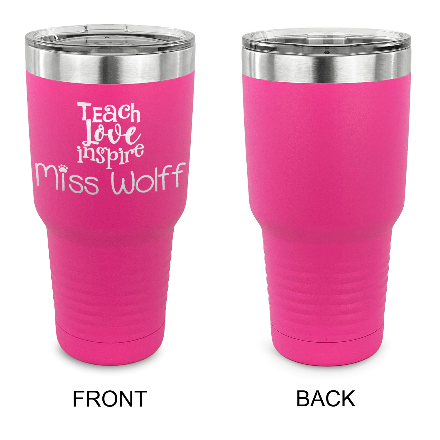 With our personalized 30 oz double wall stainless steel tumblers, you'll never have to settle for a plain, boring tumbler again! These tumblers will be a wonderful addition to your drinkware collection and will make those long commutes much brighter. Personalize one for yourself, or give these personalized tumblers as a gift to relatives, friends, or coworkers!