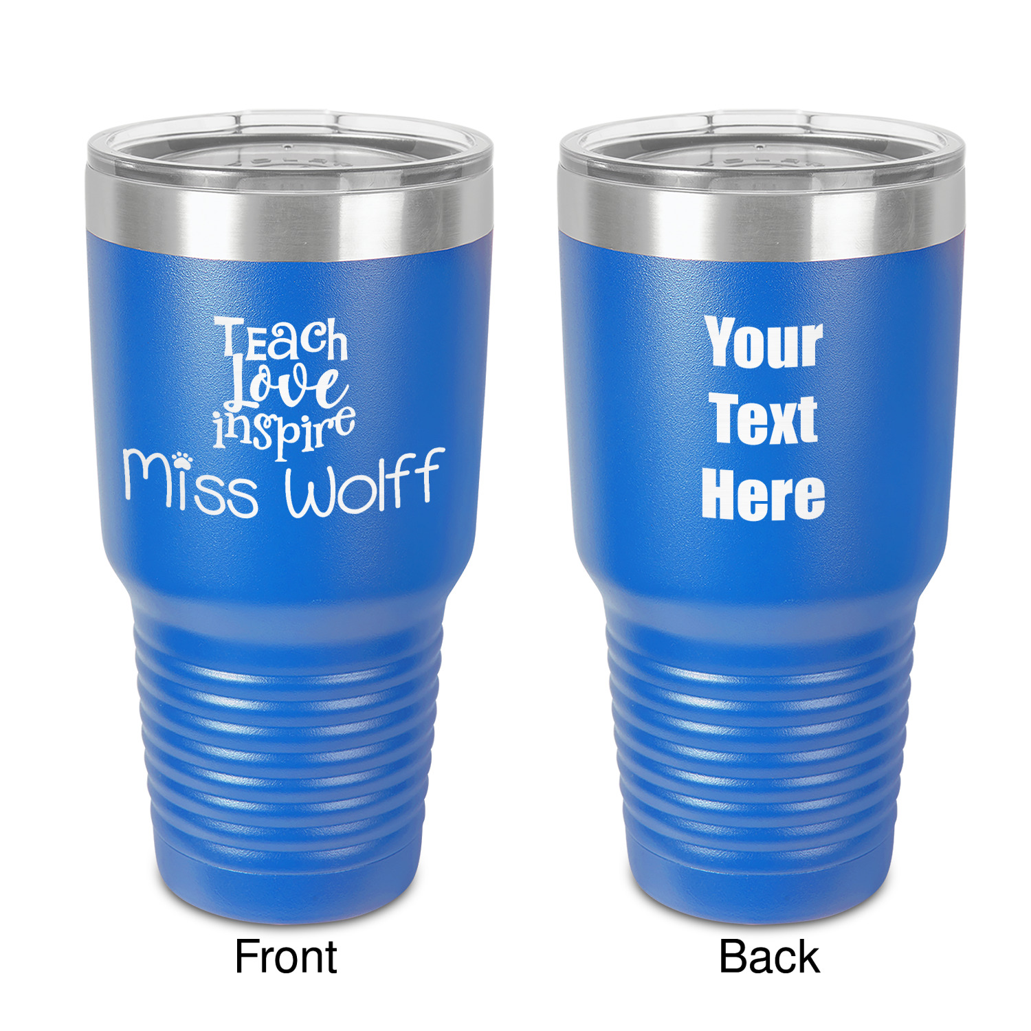 With our personalized 30 oz double wall stainless steel tumblers, you'll never have to settle for a plain, boring tumbler again! These tumblers will be a wonderful addition to your drinkware collection and will make those long commutes much brighter. Personalize one for yourself, or give these personalized tumblers as a gift to relatives, friends, or coworkers!