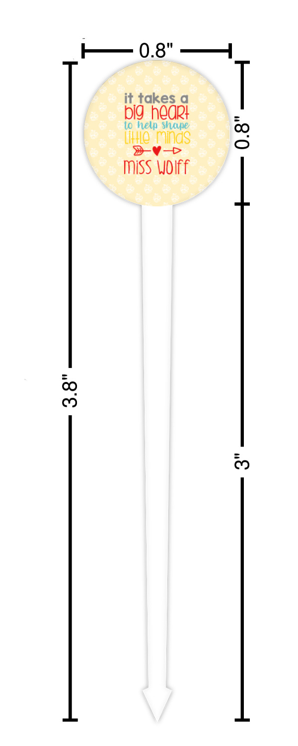 The round disc on these food & drink picks can be customized and personalized to your specifications. Your image will be printed in full color on one side or both sides. You can use the same image on both sides or use two different images.