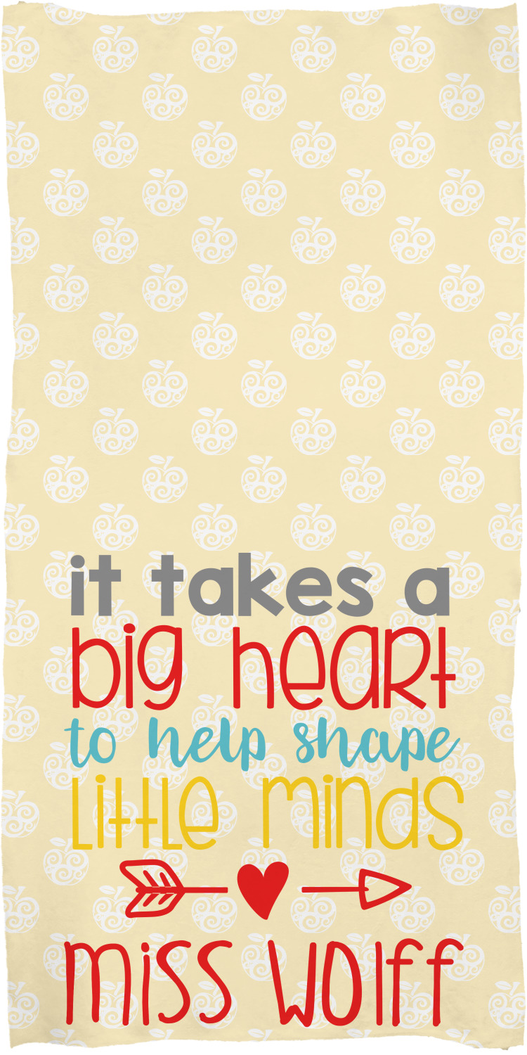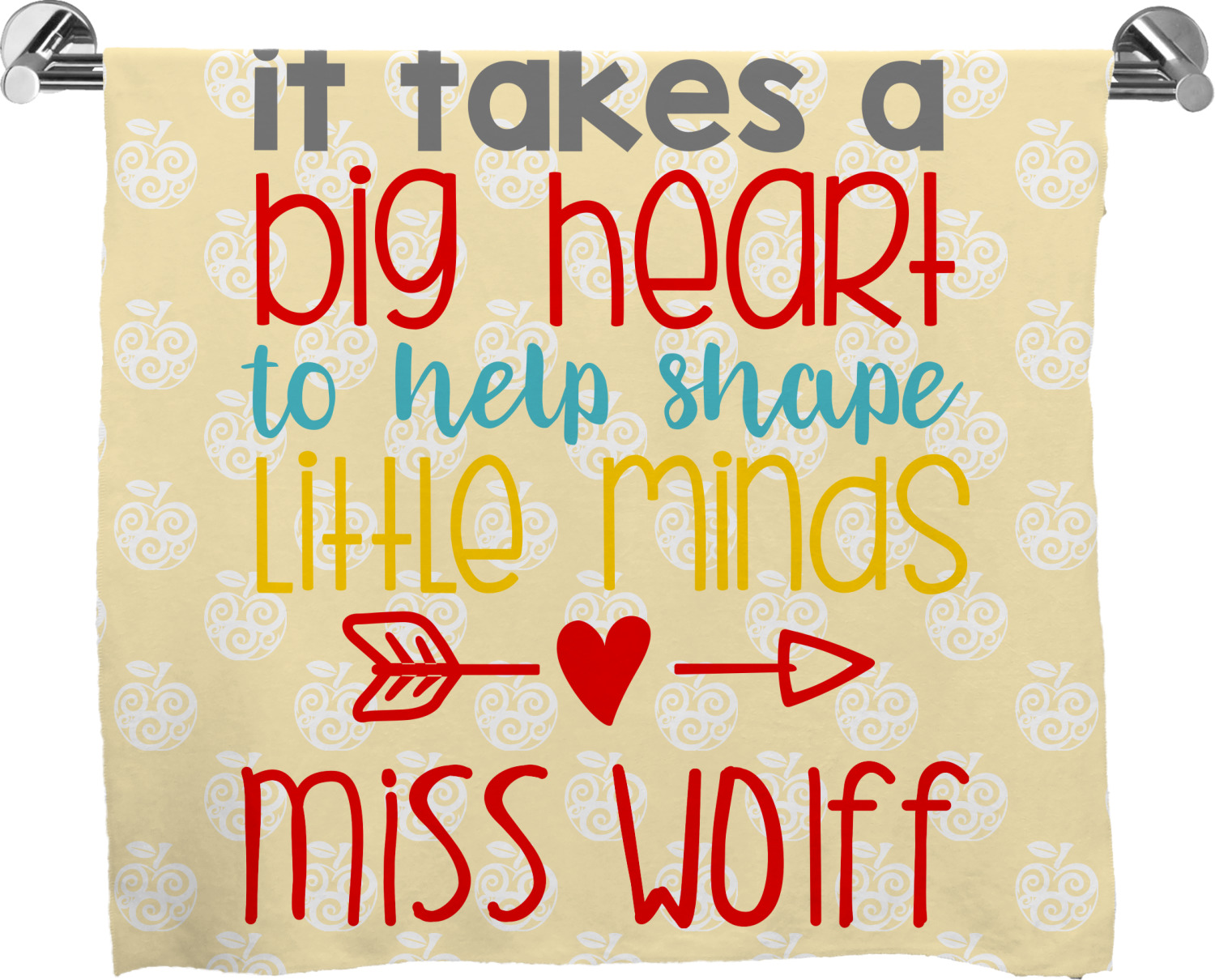These customized bath towels are slightly larger than your standard towel and are the ideal size for wrapping around your body. They measure approximately 60" x 30". Your customization is displayed across the entire front face of the towel, while the back is white.