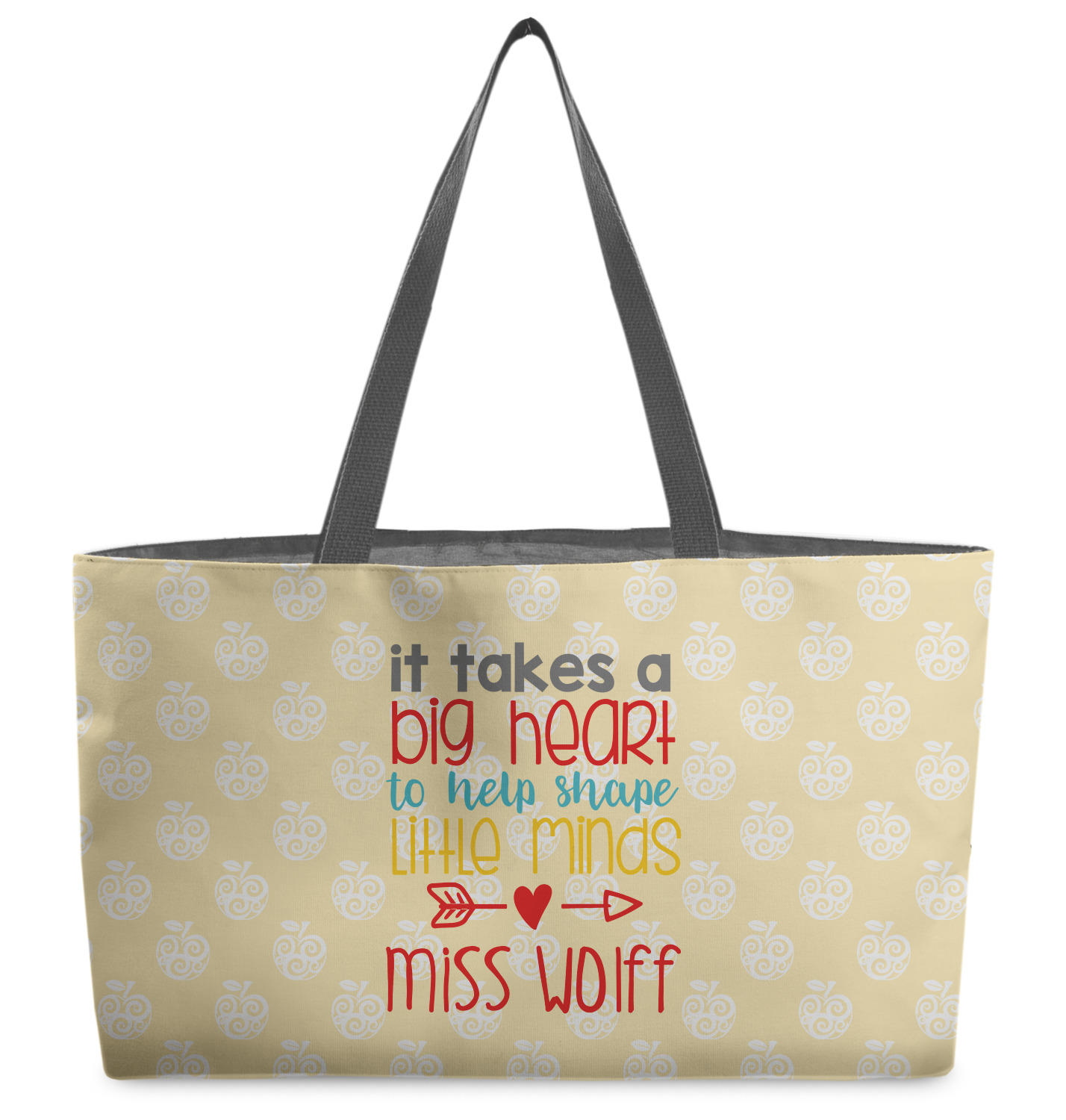 These beach totes are handmade here in the USA. Fabric is printed with your design. The tote is then sewn from the fabric pieces, lining and handles added.