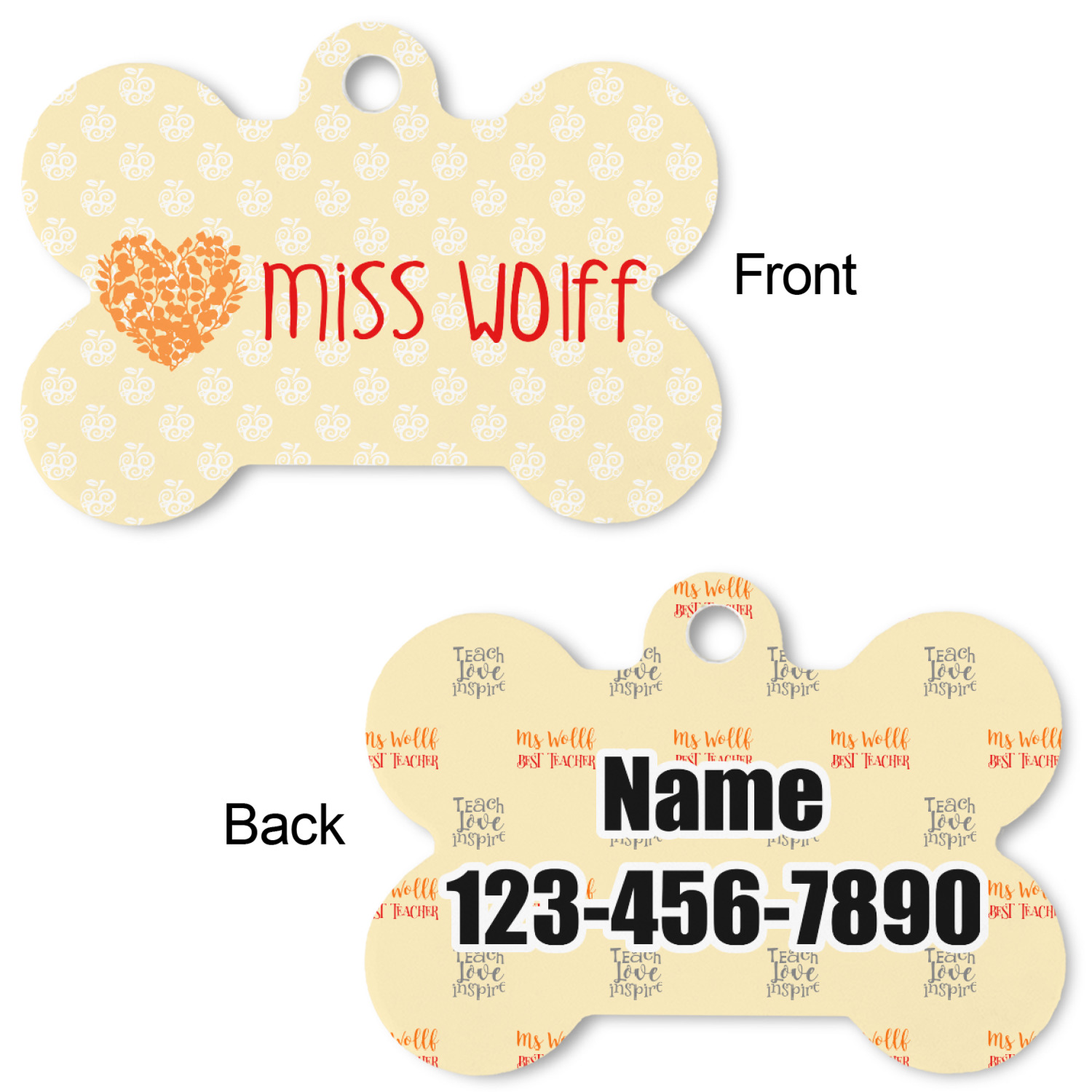 Imagine that your dog's ID tag matches thematically to your dog's name - for instance - dog named Daisy would have Daisies Bone Shaped Dog ID Tag , or a dog name Princess could have the following one of the following Princess Bone Shaped Dog ID Tags !
