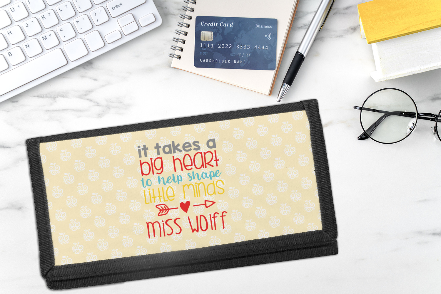 The checkbook cover is made of a durable canvas and the front flap is decorated with a vibrant design of your choosing. With 4 slots for credit cards or IDs, and 2 compartments for your checkbook register, cash, receipts, business cards, and more; this checkbook cover could easily double as a wallet.