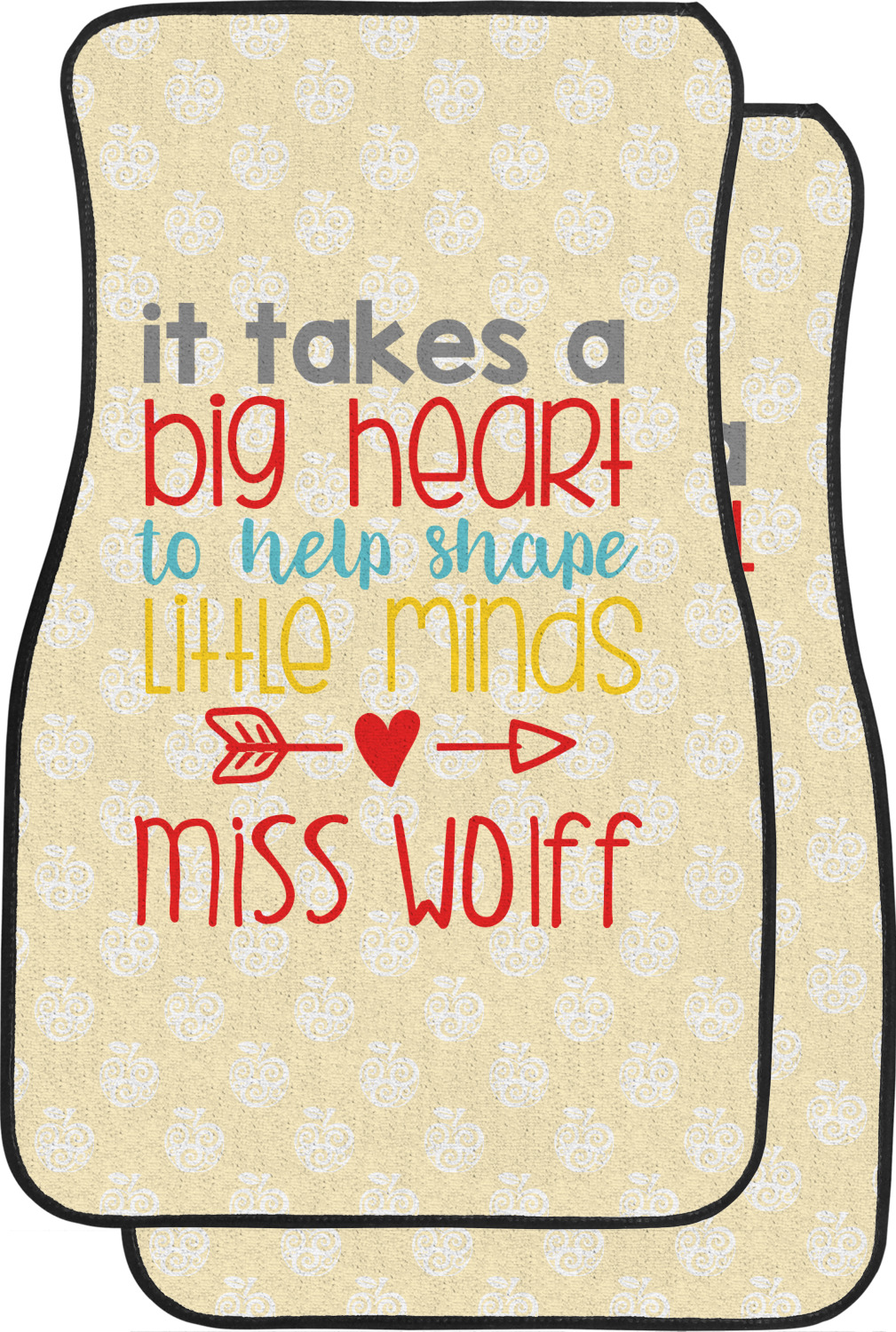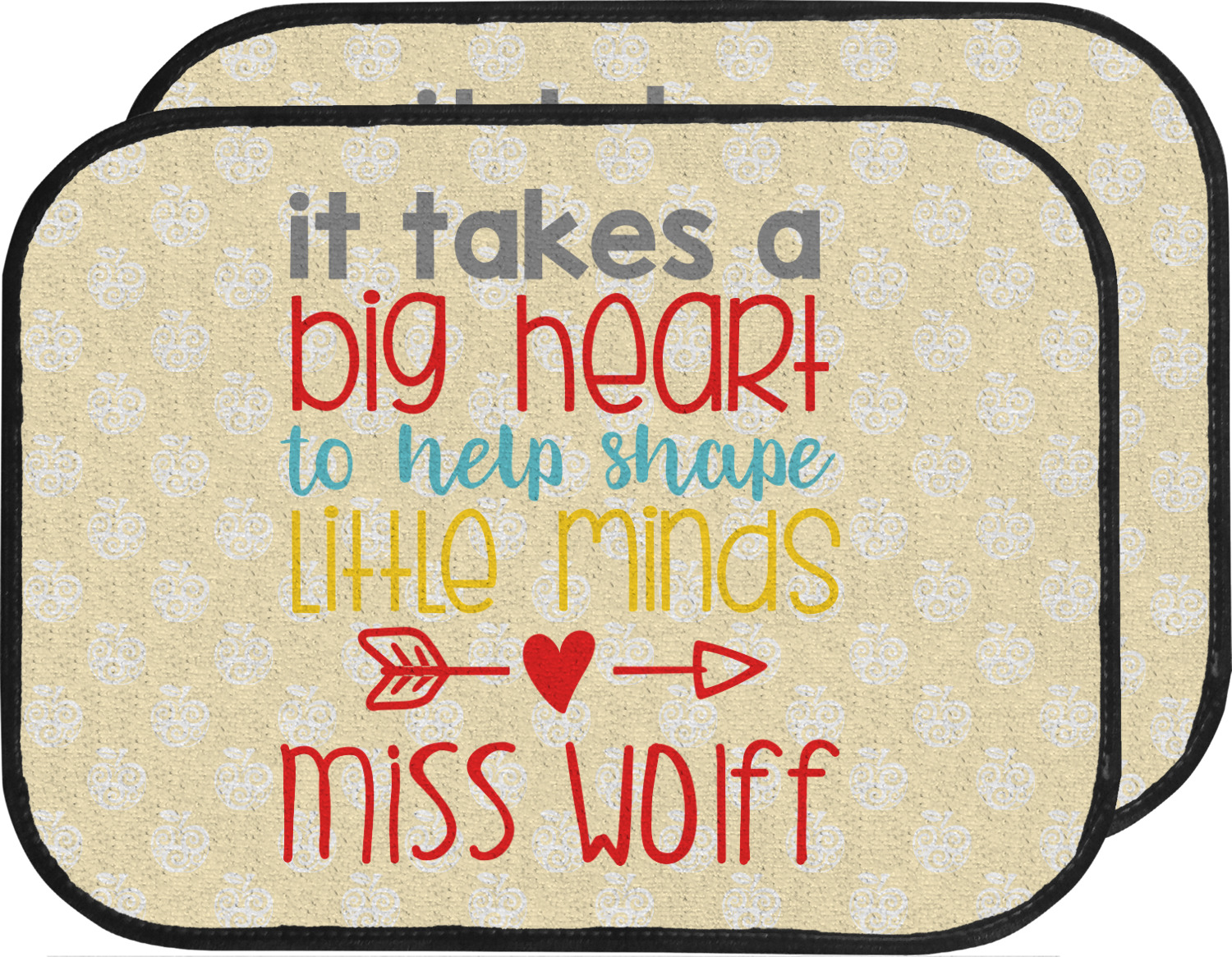 We craft our auto floor mats mats from polyester, apply a black finish to the edges, and lined at the bottom to prevent slippage. These mats protect your floors from grass, mud, and any accidental spills. We display your personalized design on the front face of each mat. The sizes of these car floor liners are standardized to provide a versatile fit for all vehicles. The front rows car mats measure at 17 by 26.5 inches, while the back rows measure at 17 by 13 inches. We sell three packages of car floor mats. You can purchase a pair of front row car mats, a pair of back row car mats, or a set of front row and back row car mats. To make an informed purchase, we recommend measuring the surface area of your car floors.