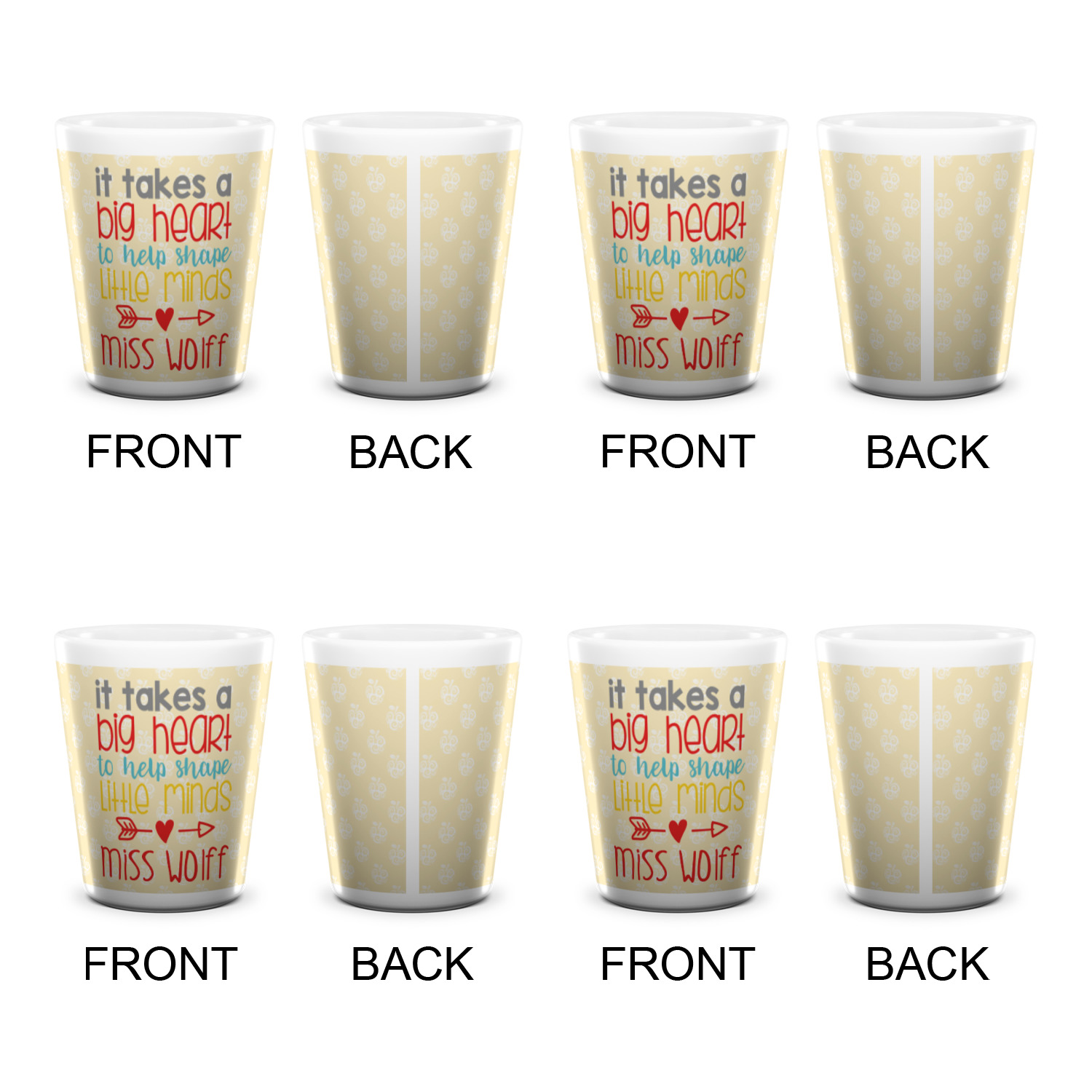 Made from ceramic these shot glasses are printed in full color with the design of your choice. These are a standard 1.5oz size and stand 2.25" tall. Available in a full white ceramic or a two-tone with a black color inside the shot glass. Buy a single or a set of 4, all of which can be designed separately to get you just what you want and need.