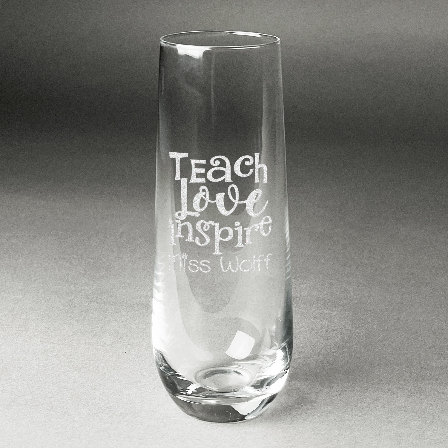 Design your custom stemless champagne flutes and we will then laser engrave your unique design on them for you. Whether they are a special gift for a bride and groom, for your New Years Eve party, or a bachelorette party you are sure to be able to add a custom personalized touch to make them perfect for the occasion.