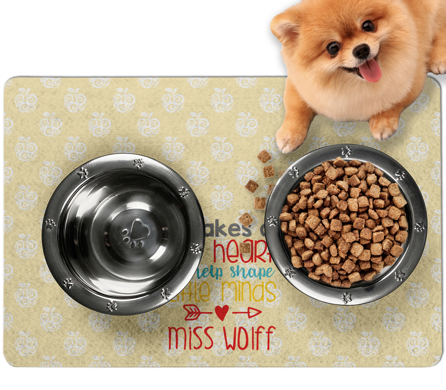 Frustrated with the mess your pets make during mealtime? Personalize a multi-functional dog food mat that prevents spills from reaching your floors, while also incorporating some cute decor to your dog's eating area!