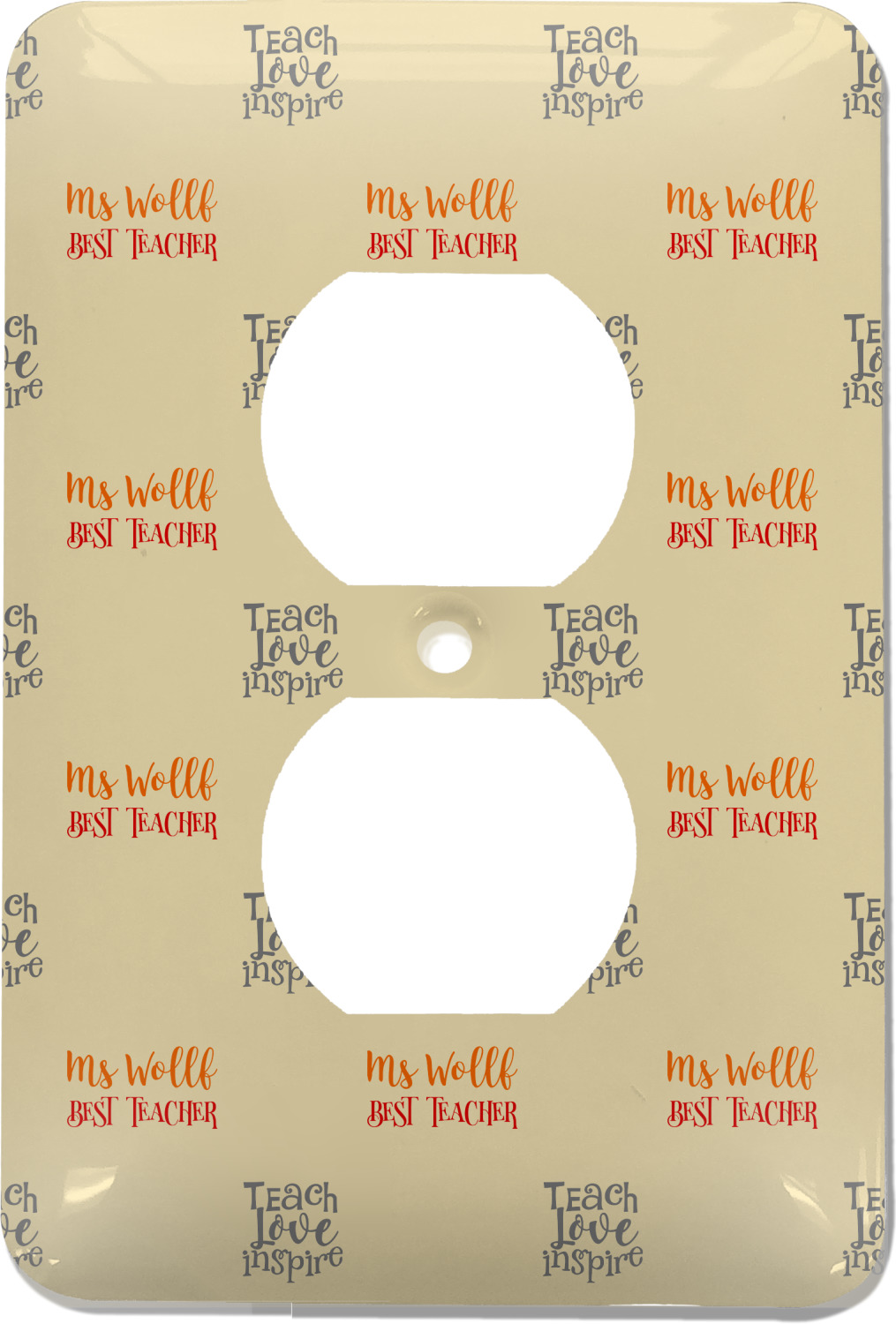 These outlet covers are made from a sturdy metal and display your design across its face. A satin finish coats the design to give it a finished look. The center of this outlet plate cover has a small hole to accommodate a screw upon installation. With your purchase of this decorative outlet cover, we include one screw. This outlet plate is of a standard size, and measures at approximately 3.5 by 5 inches.