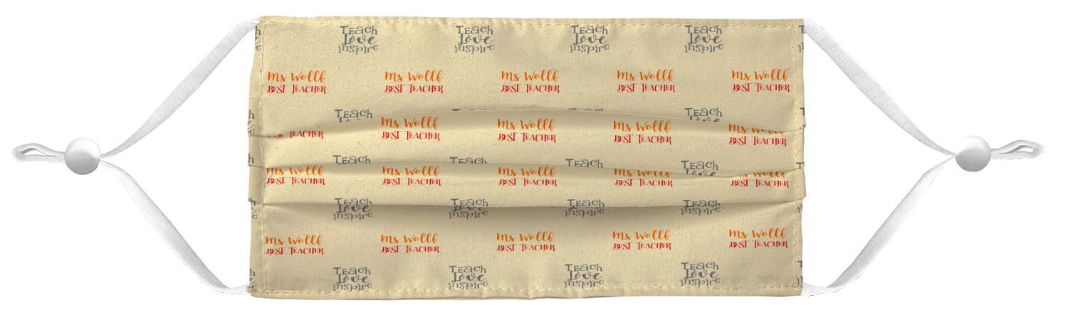 These fun face masks are 7" wide and 3.5" high. They feature pleats, adjustable ear loops, and are made with two layers of fabric. The top layer where your design is printed is a breathable polyester sheeting, while the inside layer is a soft microfiber polyester