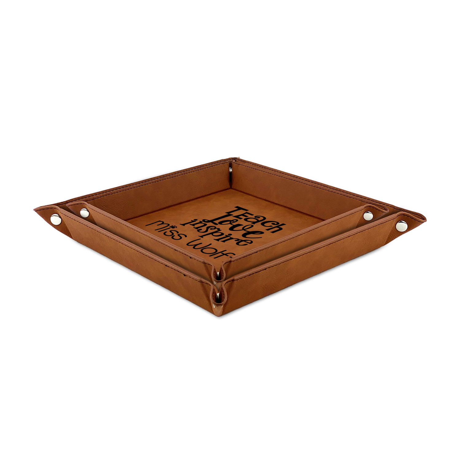 The leatherette wraps the hard board base and sides with flexible hinges to fold the sides up. The corners are secured using silver snaps. The 6in x 6 in tray measures approximately 9.5in x 9.5in when laid flat. The 9in x 9in tray measures approximately 13in x 13in when laid flat.