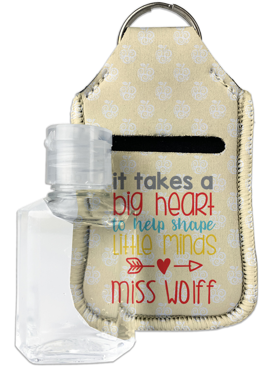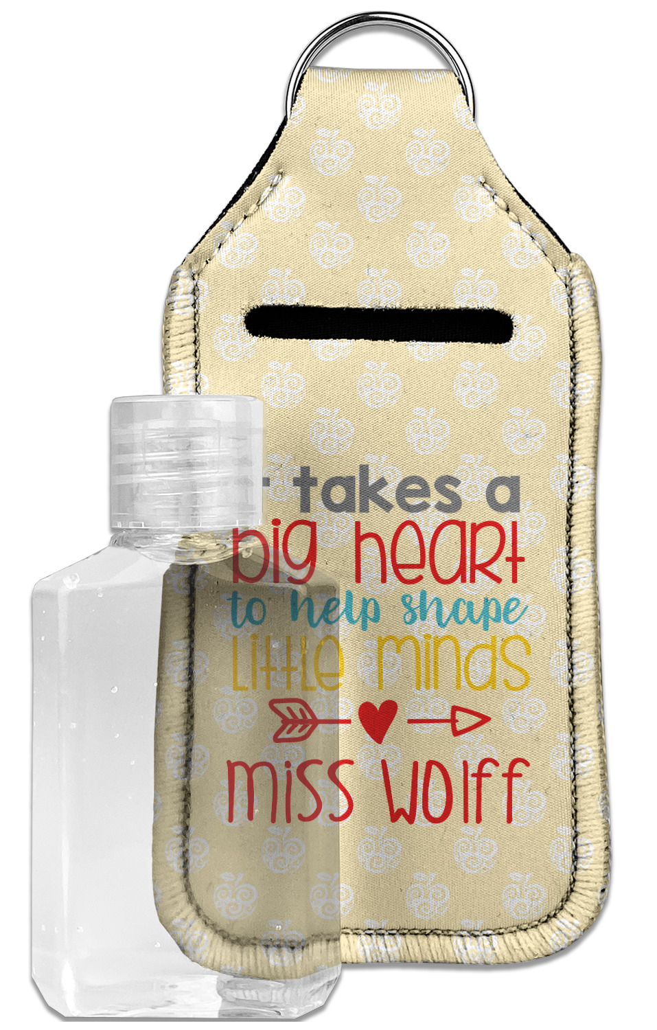 Each hand sanitizer holder comes with its own empty travel-sized, refillable hand sanitizer sure to fit snug in your customized sanitizer case! Our hand sanitizer cases are a durable, yet soft neoprene material sure to last any daily activities or travel agenda. Customize and personalize a hand sanitizer bottle holder with one of our two sizes - small (4.25" x 2.25") or large (5.5" x 2.5"). Each travel sanitizer holder comes with a keyring for attachment on bags, keys, or more!