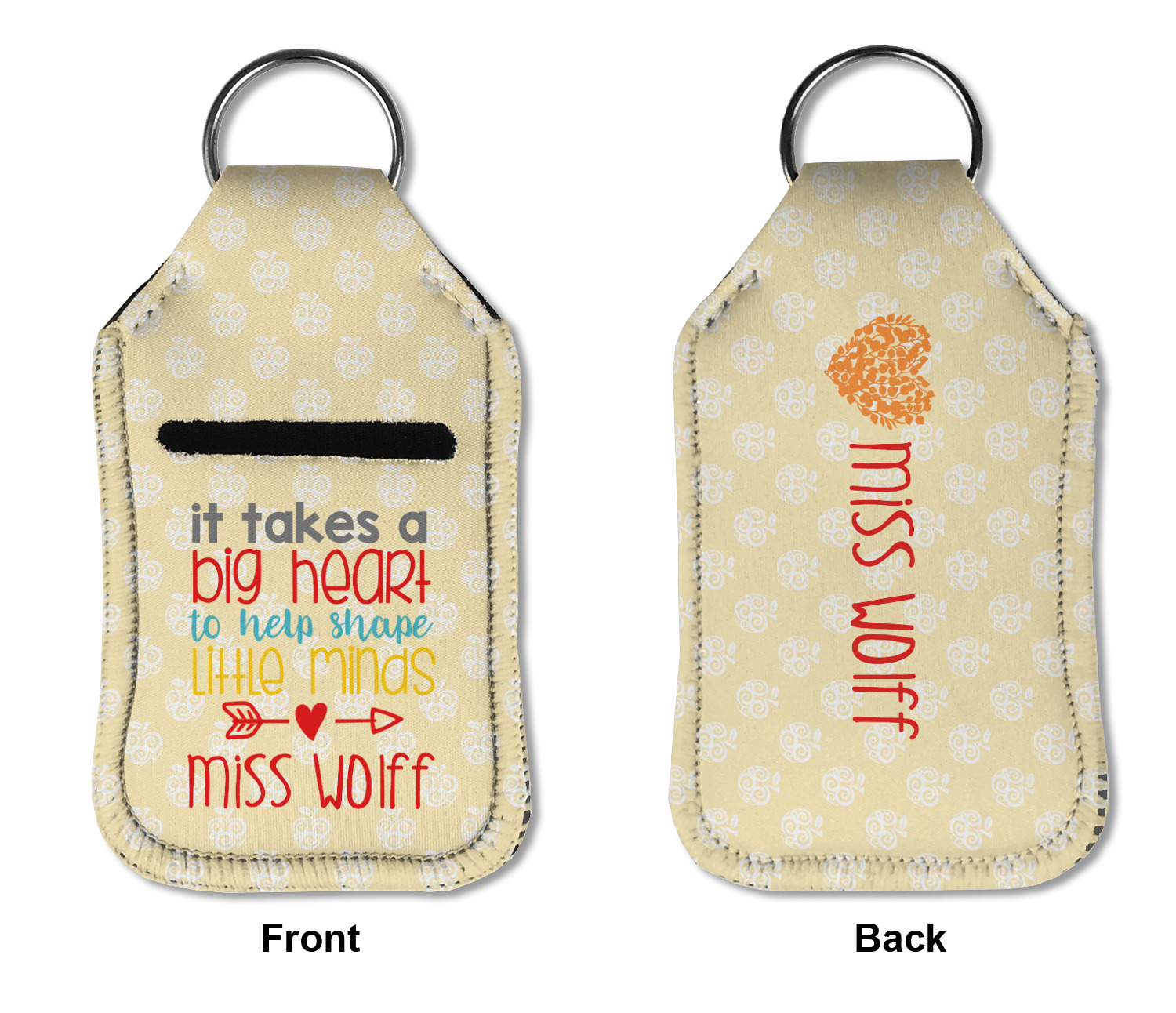 Each hand sanitizer holder comes with its own empty travel-sized, refillable hand sanitizer sure to fit snug in your customized sanitizer case! Our hand sanitizer cases are a durable, yet soft neoprene material sure to last any daily activities or travel agenda. Customize and personalize a hand sanitizer bottle holder with one of our two sizes - small (4.25" x 2.25") or large (5.5" x 2.5"). Each travel sanitizer holder comes with a keyring for attachment on bags, keys, or more!