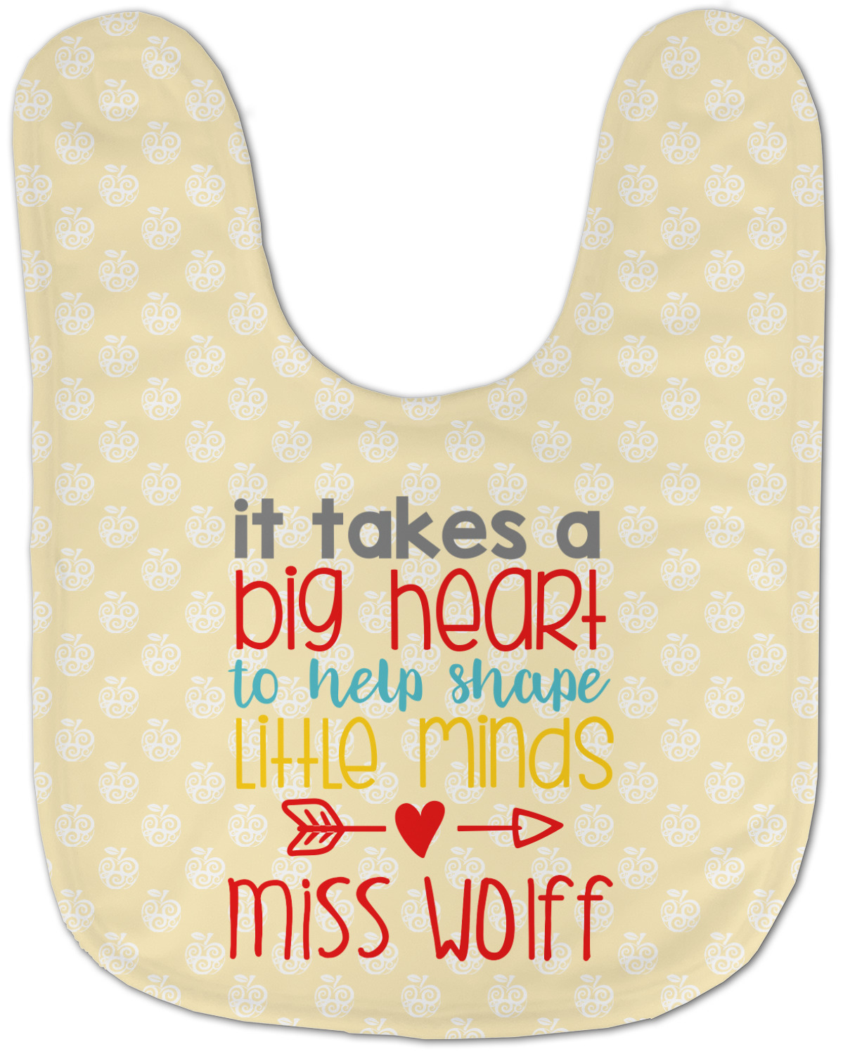 Made of soft polyester, each customizable bib hugs comfortably around the neck to catch every drip and drool. Each bib design is printed with baby-safe ink and finished with a secure stitch pattern and velcro clasp. We carry two customizable bib styles -Microfiber Velour and Jersey Knit.