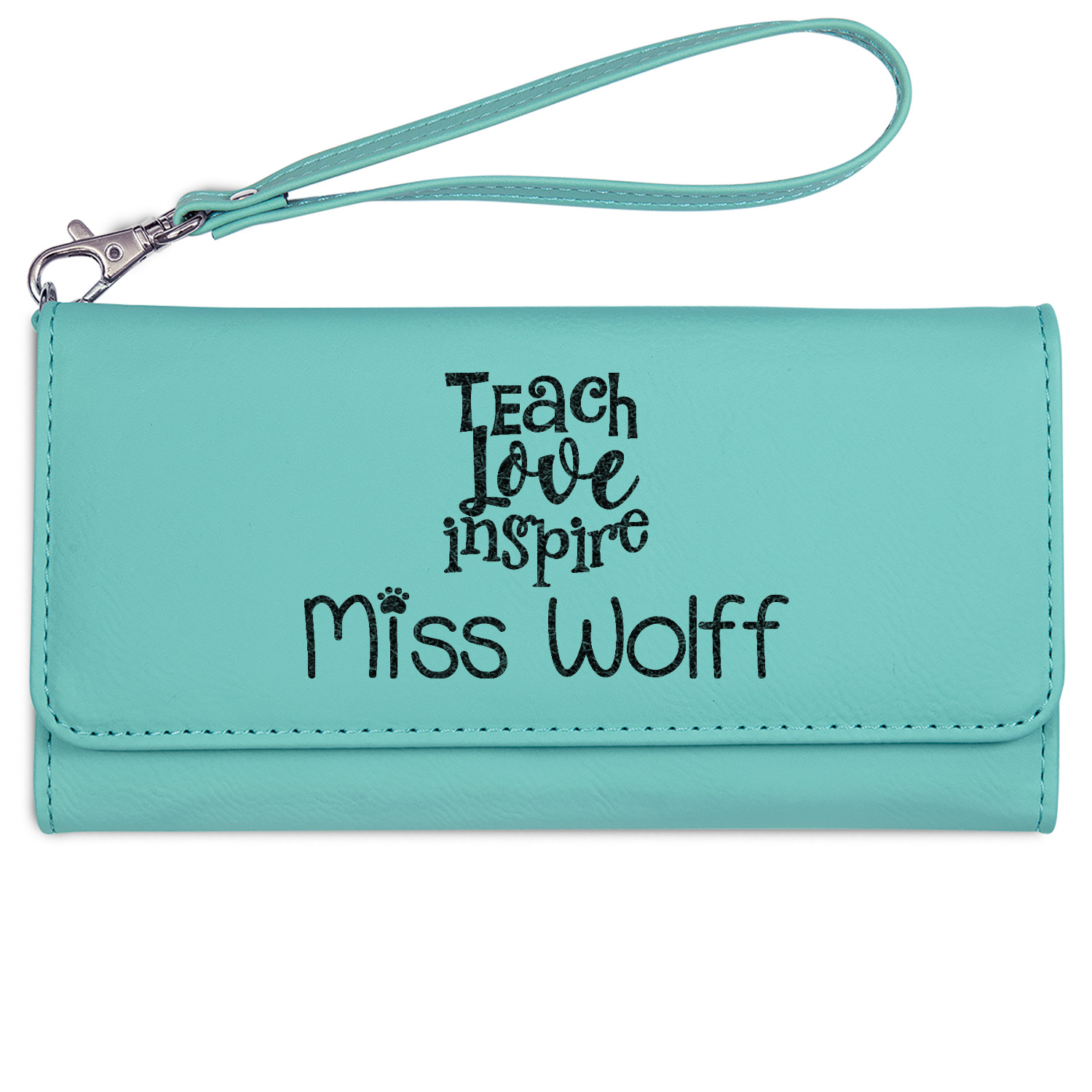 These personalized ladies leather wallets are available in 2 colors - rawhide / cognac and teal.
