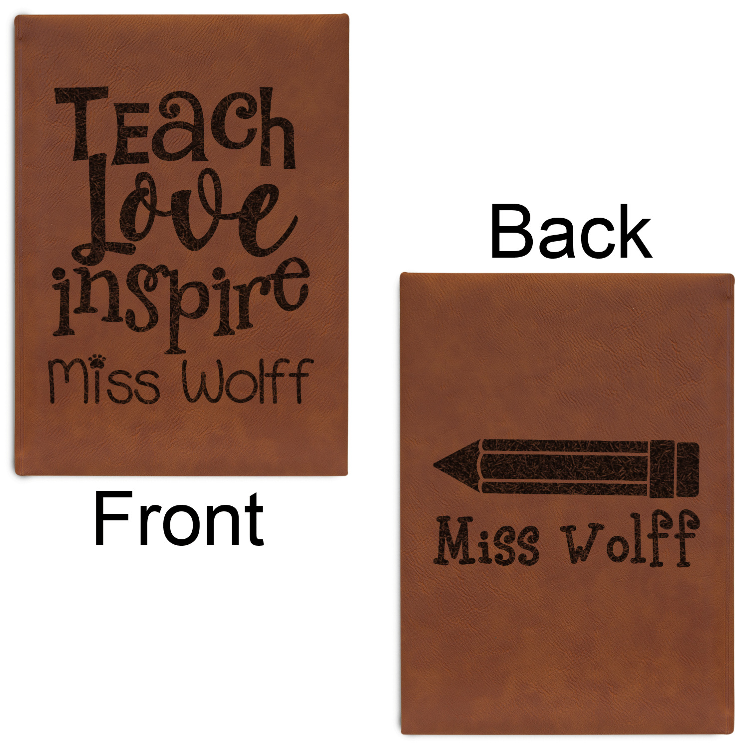 The faux leather covers are a rich cognac / rawhide color and can be customized with your design. From a simple name or monogram or a logo to a detailed mandala - the choice for customization & personalization is truly yours. Customize one of our designs or upload your own.