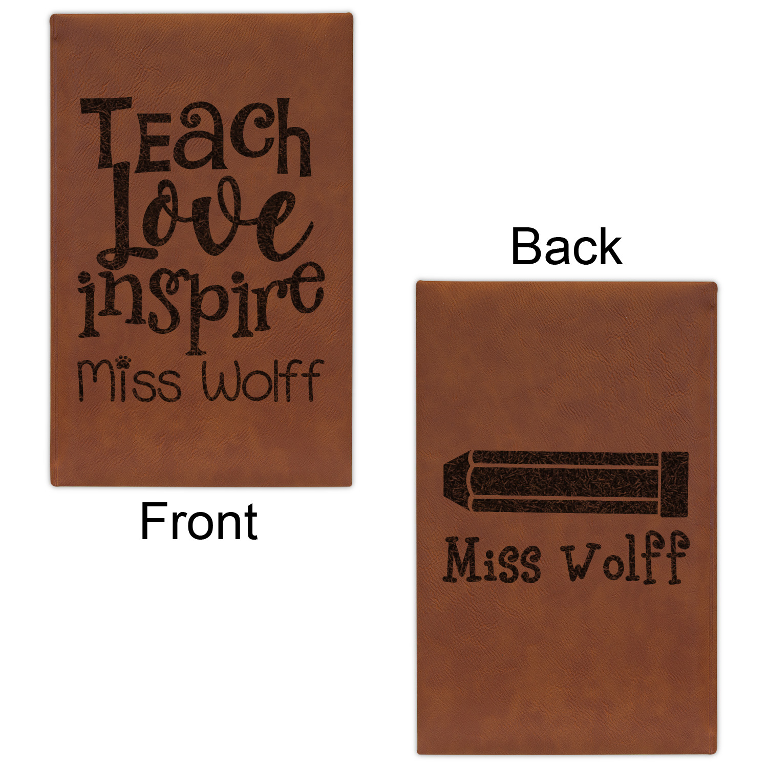The faux leather covers are a rich cognac / rawhide color and can be customized with your design. From a simple name or monogram or a logo to a detailed mandala - the choice for customization & personalization is truly yours. Customize one of our designs or upload your own.