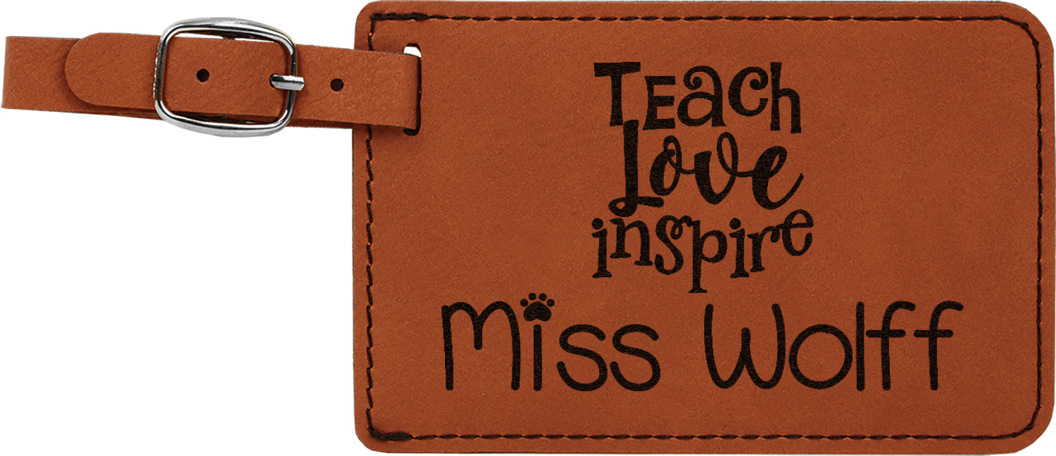 This luggage tag will surely be able to get you started in having all the right tools for traveling. It is made of a beautiful leatherette material that is a nice shade of cognac brown. The front of the tag is where your design goes. The sturdy black stitching gives your design an extra pop and gives the tag extra durability. The back of the tag has a clear vinyl window where you can slip in your address card. The tag comes with a great little buckle strap that you can easily use to clip to your suitcase. The tag itself measures at approximately 5.5"W x 4.25"H.