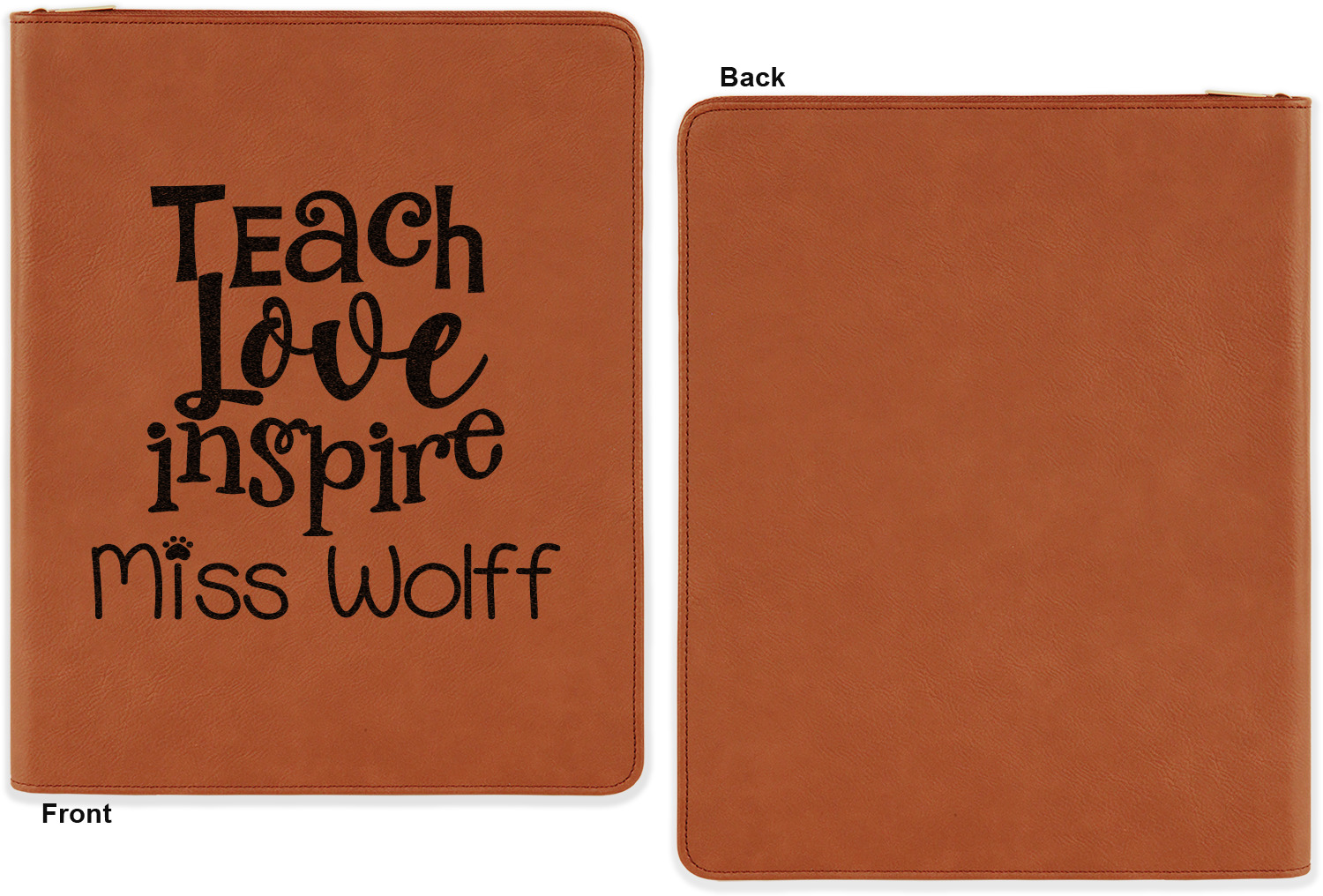 Have fun personalizing the front or the front and back of your portfolio. Choose a fun graphic, monogram, quote, or text to be laser engraved right onto your portfolio.