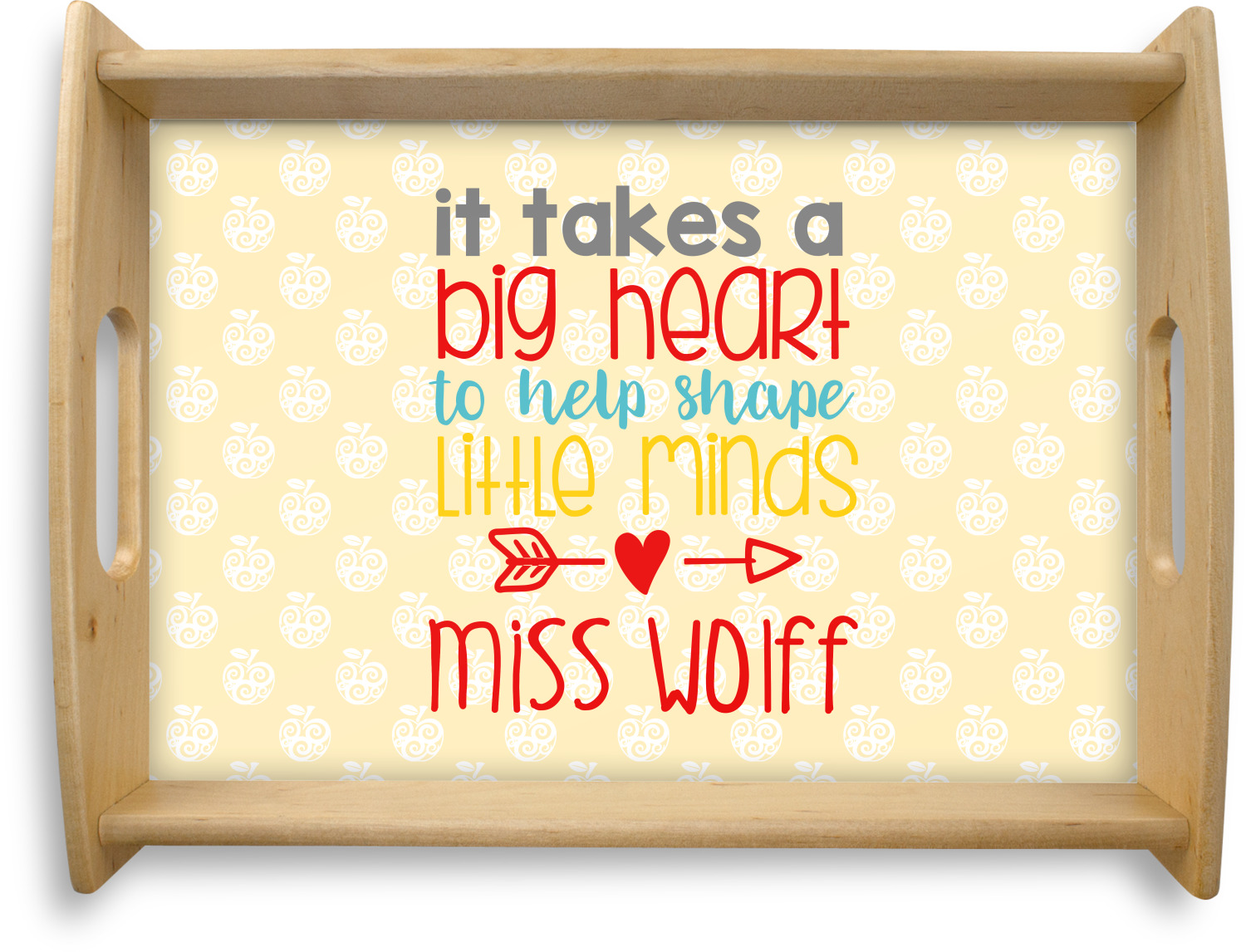 This serving tray with handles features square edges and two rounded sides, creating a very modern look. Each side is fabricated from a beautifully cut, natural wood. The bottom of the interior of the tray displays your customized design in bright, vibrant color. The tray is sold in both a black color and a natural wood look. Each variation of the wood serving tray has two sizes: Small, which is 14" x 10" x 2.25", and Large, which is 19.5" x 13.5" x 2.75".