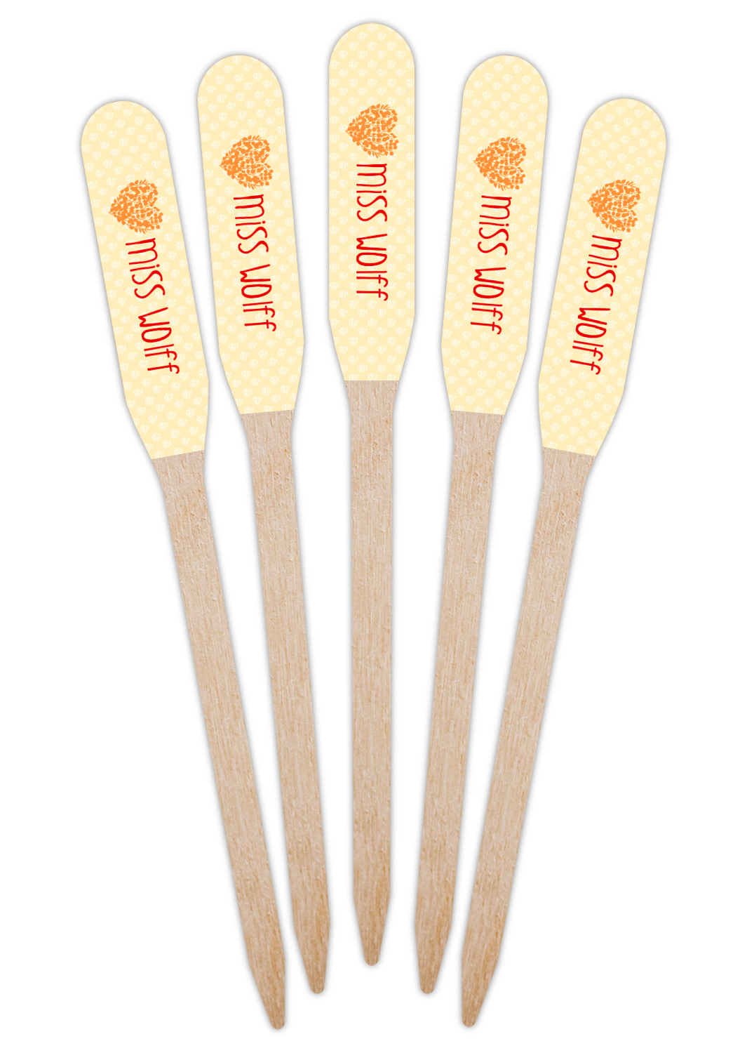 Our paddle style food & drink picks are available in 2 print styles - single sided and double sided.