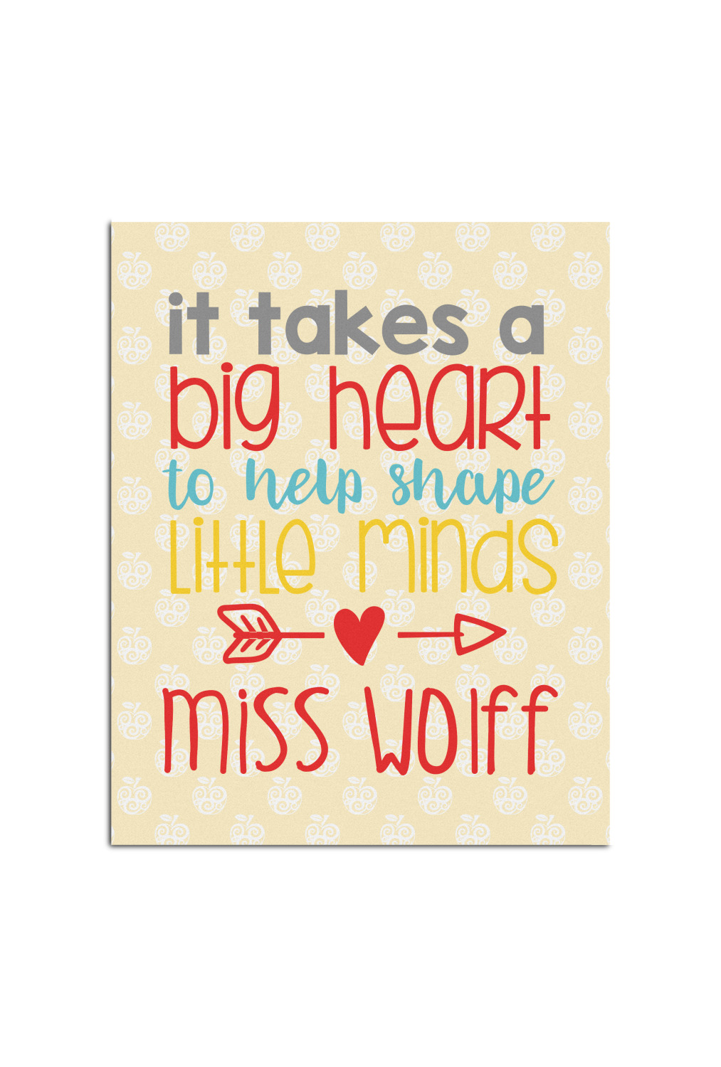 This design template features an appreciative teacher quote along with the teacher's name for personalization. We have a huge selection of teacher quotes you can choose from.