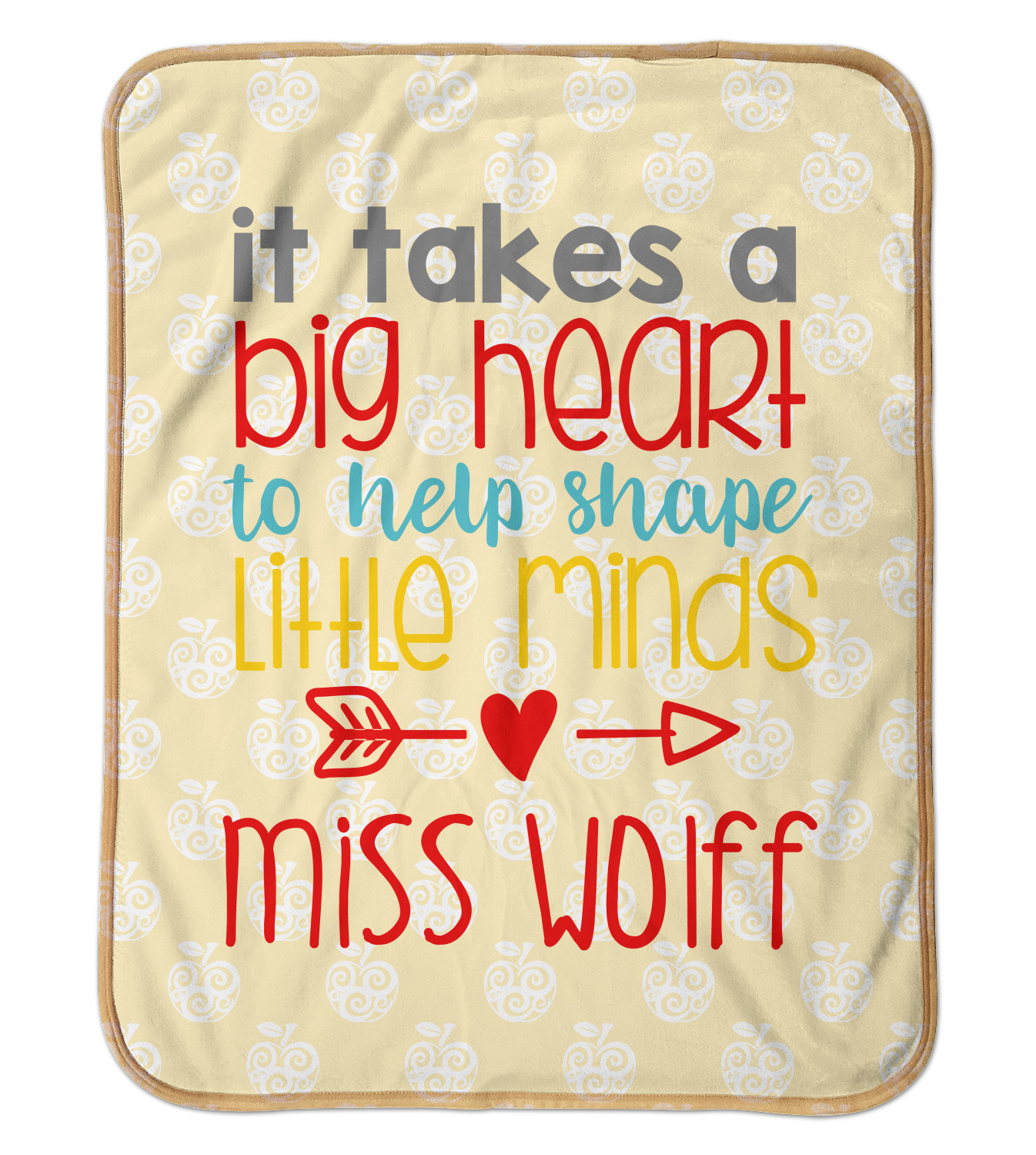 These toddler blankets are made of two different materials; the front side is made of a velvety, minky-like material that displays your customization and is perfect for a baby's delicate skin. The underside is crafted from a fluffy, sherpa fleece, and bears a classy, tan color. The dual texture gives your baby added comfort, as both sides are incredibly soft and plush. The corners of this blanket are rounded, and the ribbing of the blanket is a tan color, which complements the sandy color of the sherpa fleece. At approximately 30 by 40 inches, this custom baby blanket is the perfect size for babies and toddlers.