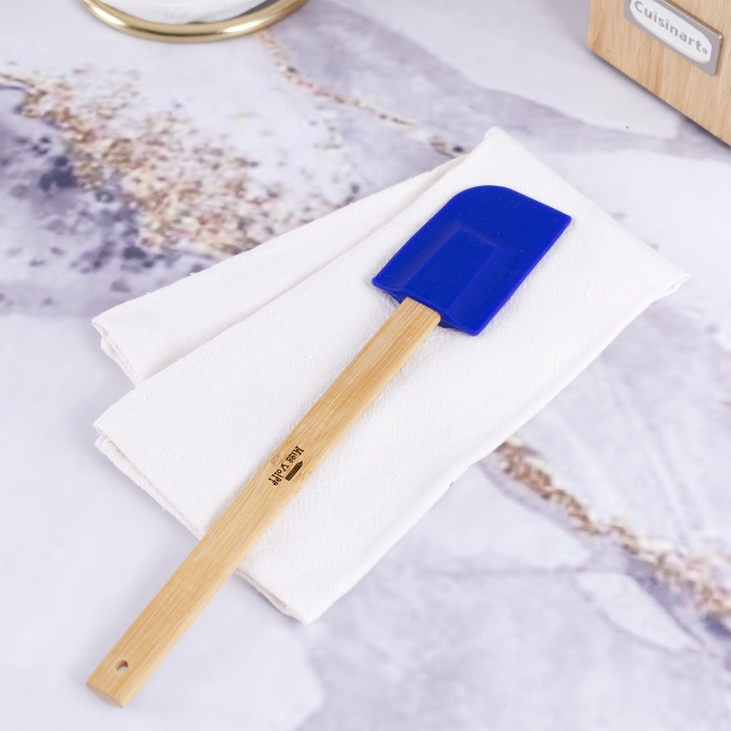 With a bamboo handle made from sustainable bamboo sources and a high quality silicone spatula at the bottom these work great for mixing, icing, etc. The size is perfect - 12in long and 2.125in wide for all kitchen tasks. The handle is 0.75in wide and 0.25in thick for a great feel in hand. There is a hole in the end of the handle for easy hanging.