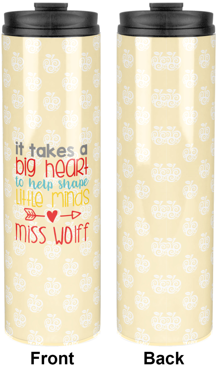 Sip your favorite drink on the go with your own custom stainless steel tumbler! Our slim cylinder shape is perfect for holding your drink in hand, in your purse, or in your backpack! This sleek and modern tumbler is a perfect gift for coffee and tea lovers keeping their drinks just the right temperature throughout the day! We offer two sizes, a 16 oz. or 20 oz., to personalize. Browse and customize or design or create your own with our online design studio!