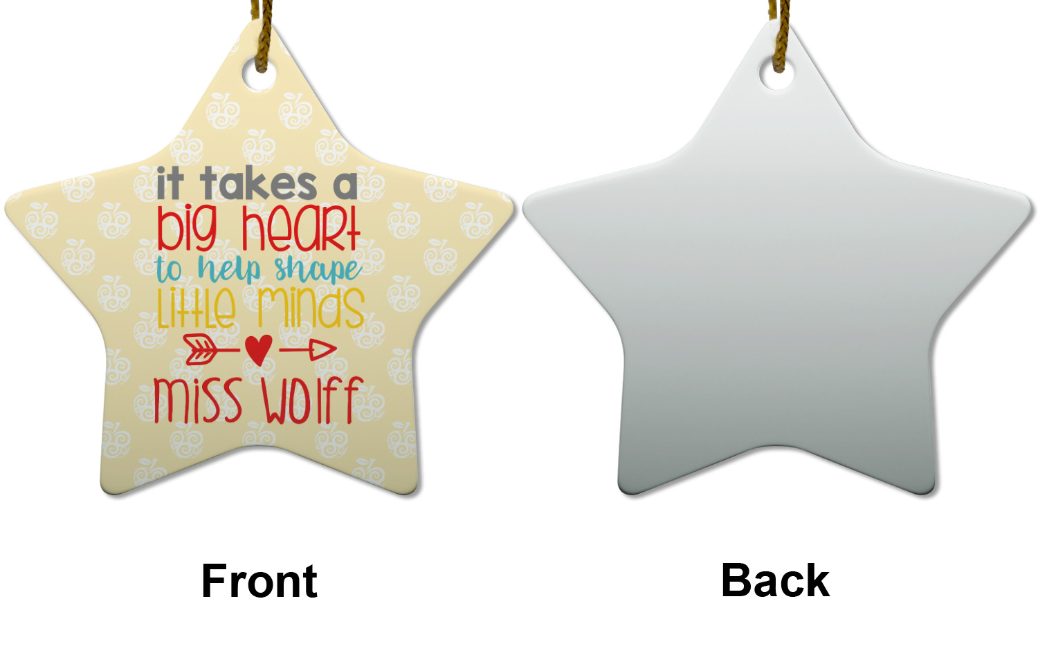 Our ceramic ornaments are a nice touch of pottery like accents not only for a rustic of vintage-themed Christmas but for any style you want to do this holiday! We carry a selection of flat ceramics to personalize. Choose from a round, star, or heart-shaped porcelain ornament to design! Each shape is approximately 3" x 3" and is perfect for long term use to adorn your tree every holiday! Use our online design studio to personalize your own ceramic ornament today!