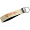 These key fob keychains are made from a polyester weave, right here in the USA. They feature a silver, metal clasp, attached to a round keyring. The piece gives the personalized wristlet a beautiful, finished look. Your customized design is printed on the outside of the keychain strap. We carry these wristlets in two sizes: small, which is 5 inches in width, and large, which is 5.5 inches in width.