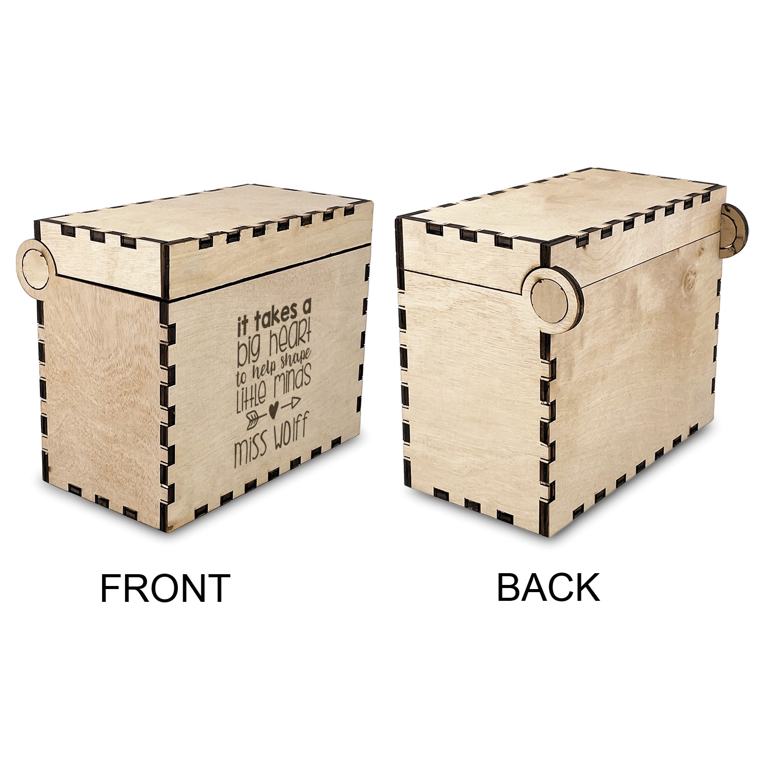 Using our design library you can design your recipe box to be personalized just for you. We will then laser engrave it and assemble it and have it ready for you to insert your recipe cards when you recieve it.