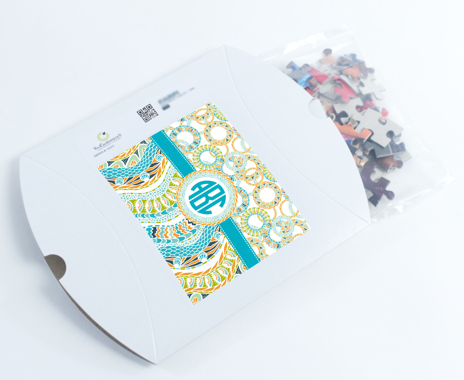 You can also upload your logo or art that you or your kids drew. To create more challenging jigsaw puzzles, you can create a pattern from with your logo or artwork. You can also add other elements such as text or personalization.
