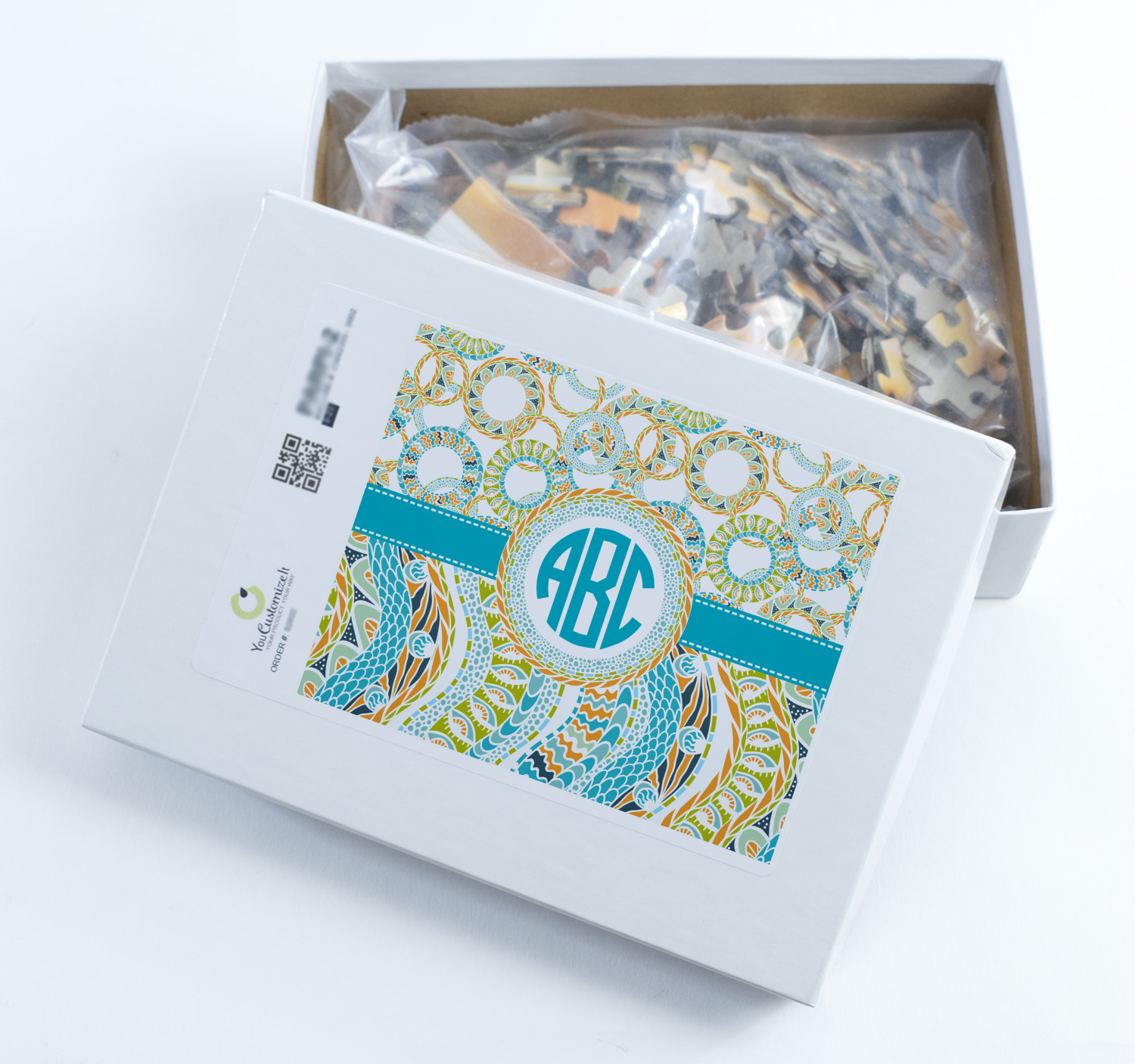 You can also upload your logo or art that you or your kids drew. To create more challenging jigsaw puzzles, you can create a pattern from with your logo or artwork. You can also add other elements such as text or personalization.