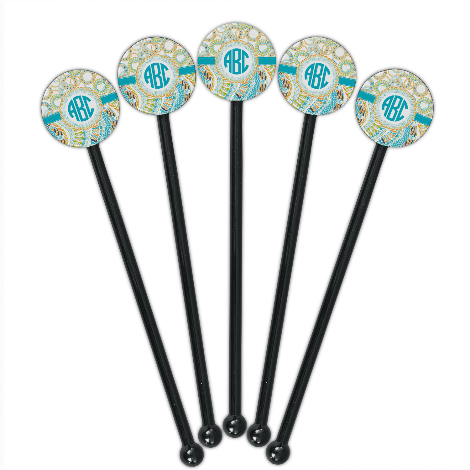 Shape + Symbol Designs for 5.5" Round Plastic Stir Sticks - Black - Single-Sided