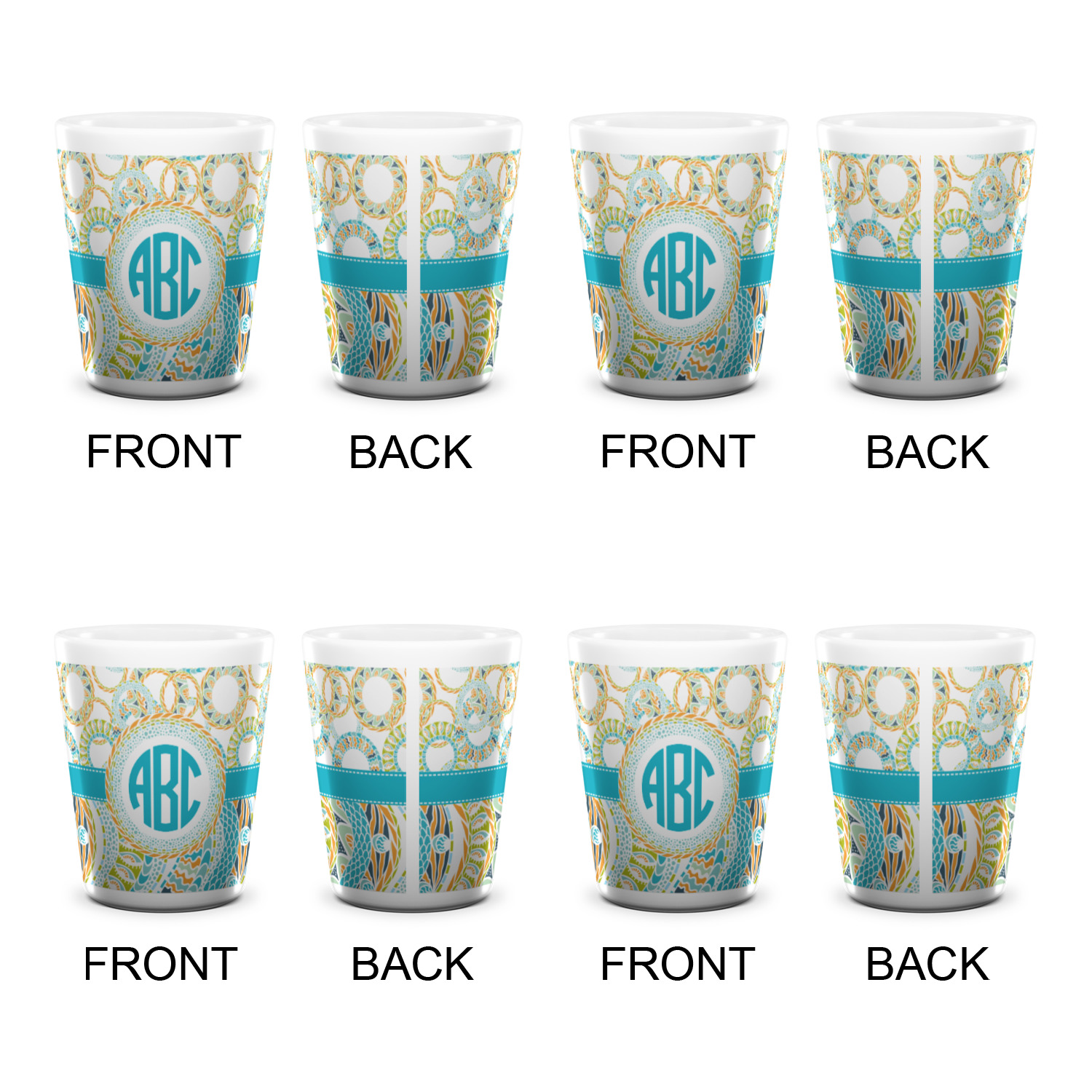 Made from ceramic these shot glasses are printed in full color with the design of your choice. These are a standard 1.5oz size and stand 2.25" tall. Available in a full white ceramic or a two-tone with a black color inside the shot glass. Buy a single or a set of 4, all of which can be designed separately to get you just what you want and need.