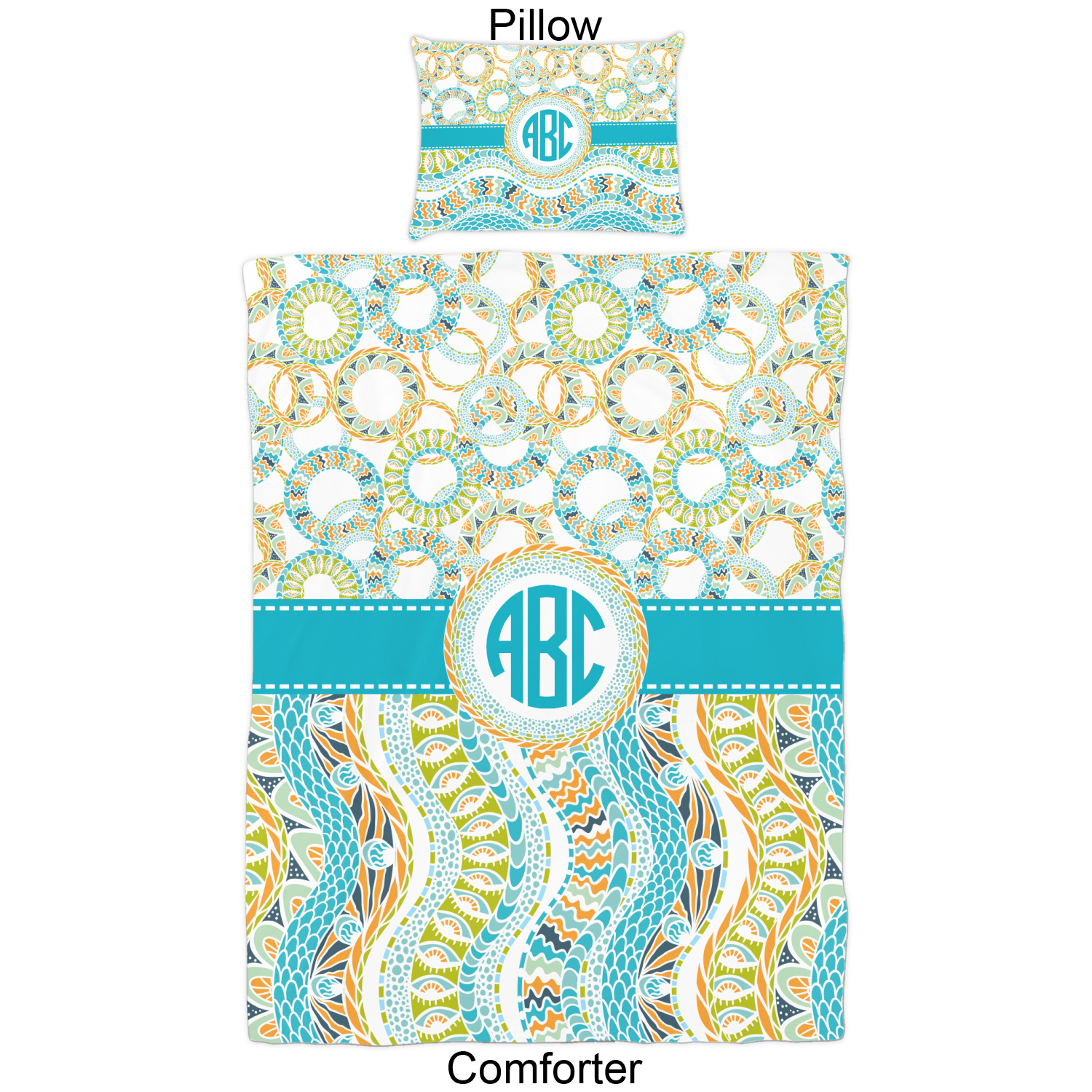 Both, the comforter and shams are digitally printed; all the fabric is then cut and sewn to make your custom comforter or comforter set.